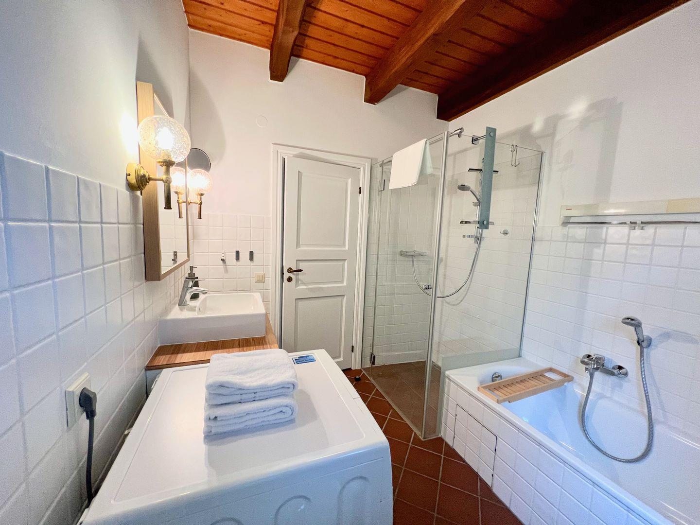 Im Bad befindet sich auch der Waschtrockner, der kostenlos genutzt werden kann.