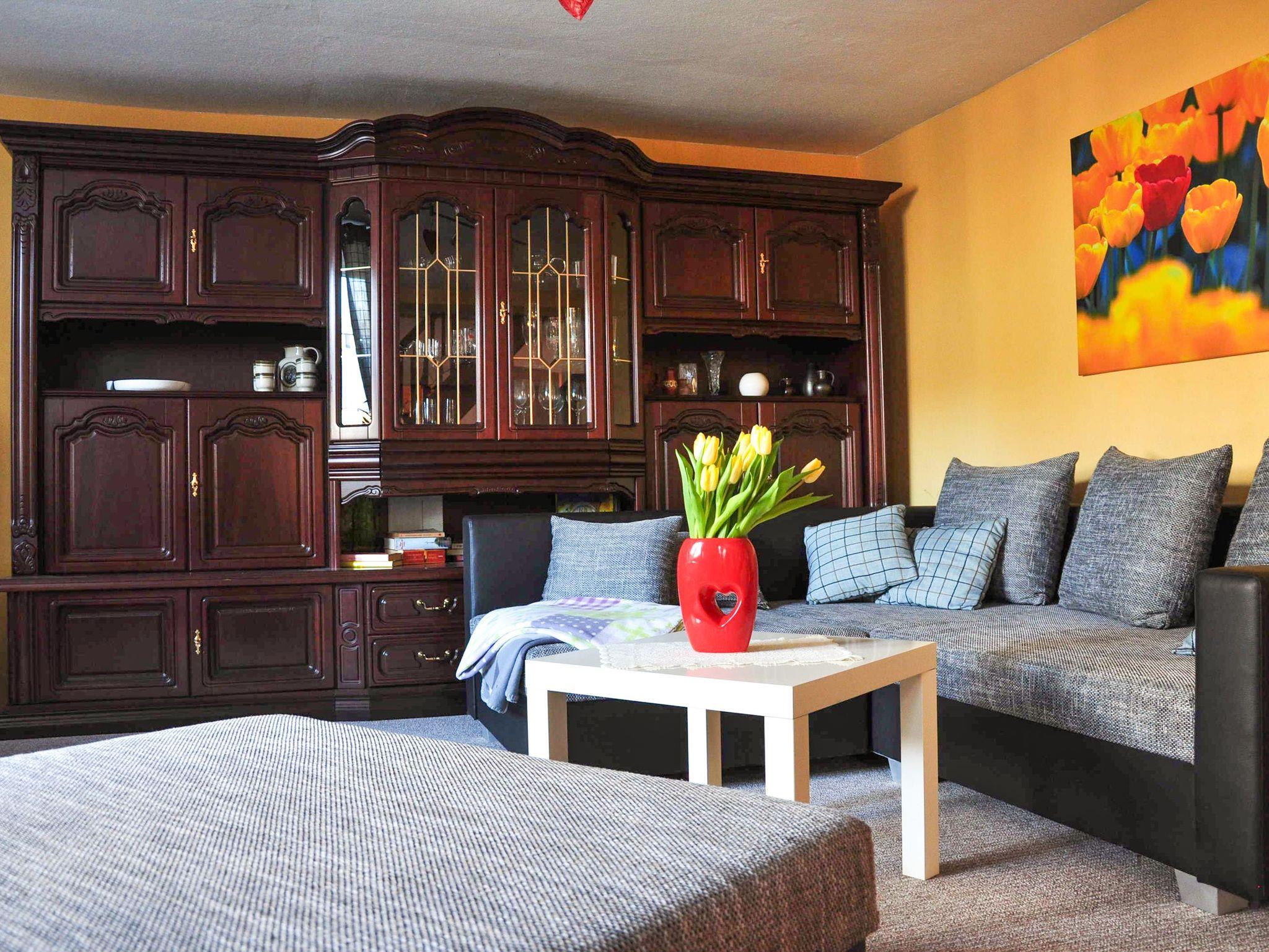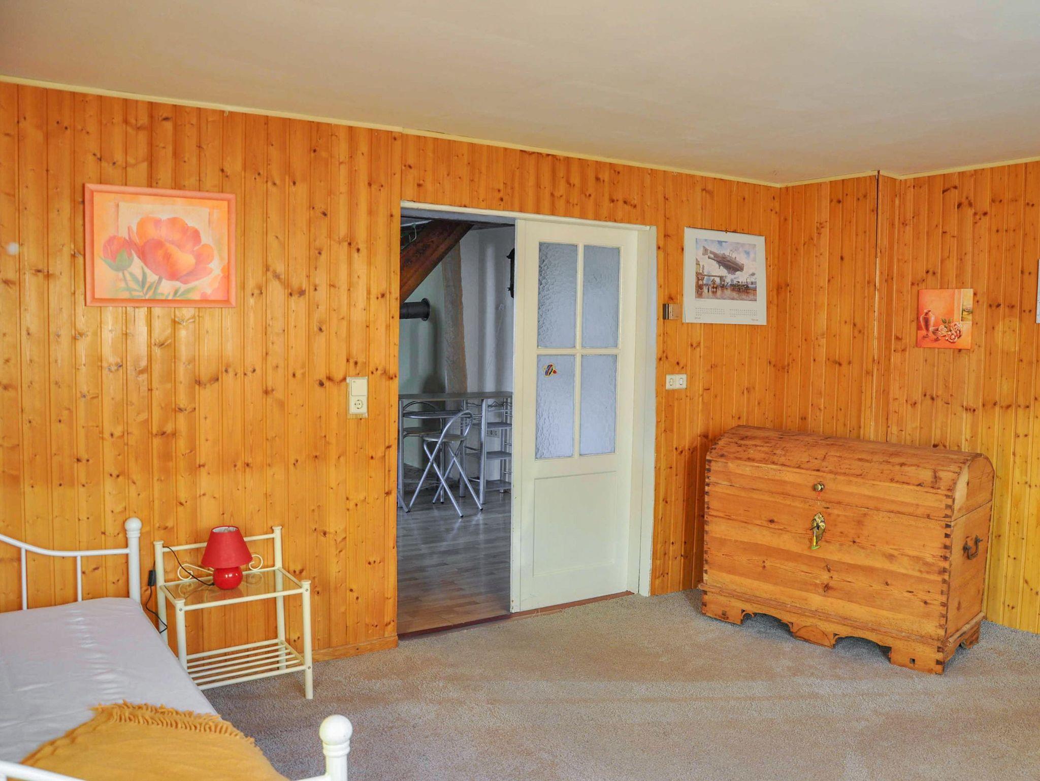 Die Ferienwohnung Ferien auf dem Lande ist großzügig und gemütlich eingerichtet und bietet auf 120 m² Platz für bis zu 6 Personen. Im Wohnzimmer findest du ein bequemes Schlafsofa (180x200), einen Kamin für kuschelige Abende und einen TV für entspannte Stunden. Das Wohnzimmer ist einladend und bietet genug Platz für die ganze Familie oder eine Gruppe von Freunden. Es gibt zwei Schlafzimmer: Eines ist mit einem Boxspringbett (180x200) ausgestattet, das andere verfügt über ein Doppelbett (140x200) und ein zusätzliches Hochbett (90x200, in 1,40m Höhe), sodass hier auch kleinere Familien oder Freunde gemeinsam übernachten können. Die separate Küche ist mit allem ausgestattet, was du für die Zubereitung von Mahlzeiten benötigst. Hier findest du einen Essbereich, einen Backofen, Herd, Kühlschrank, Spülmaschine, Mikrowelle sowie eine Kaffeemaschine, Toaster und Wasserkocher. So steht deinem kulinarischen Genuss während des Aufenthalts nichts im Wege. Das Badezimmer ist mit einer Dusche und einem WC ausgestattet, sodass du dich nach einem erlebnisreichen Tag erfrischen kannst.