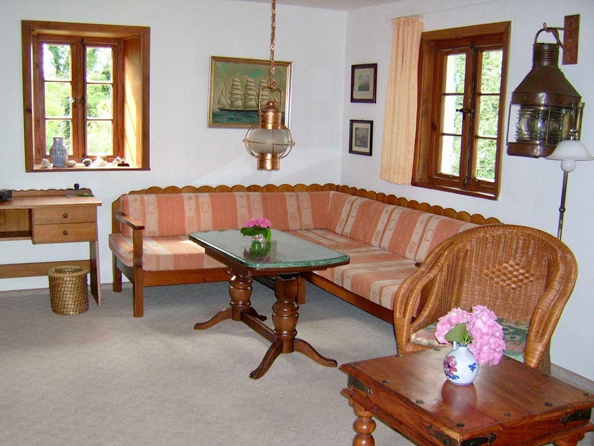Das Ferienhaus auf dem Schifferberg ist ca 70 m² groß und hat Platz für 4 Personen. Das gemütliche Wohnzimmer ist mit traditionellen Möbeln und einem Kamin ausgestattet und hat Zugang zur sonnigen Terasse. Die Ferienwohnung verfügt über WLAN und Magenta-TV. Die Küche besitzt 4-Flammenherd mit Ceranfeld und Backofen, Geschirrspüler und Kühl-Gefrierkombination. Dort befindet sich auch ein gemütlicher Eßplatz. Das Haus verfügt über eine WW-Heizung.