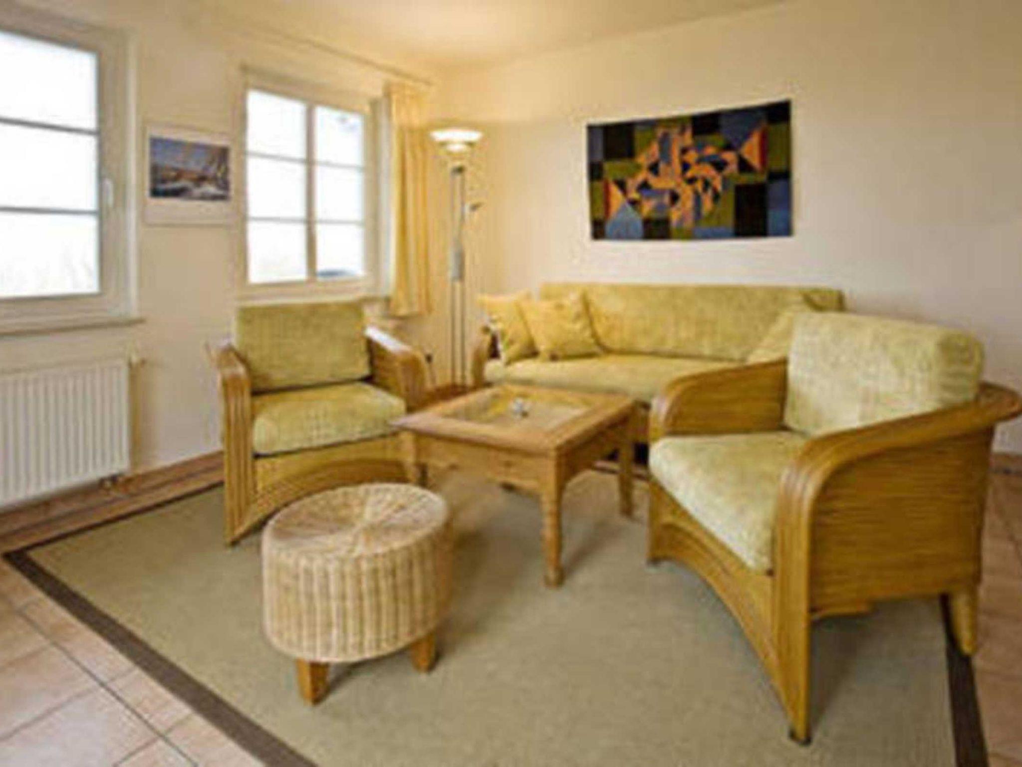 Die Wohnung Karl für 4 Personen im Erdgeschoß ist rollstuhlfahrerfreundlich eingerichtet. Sie ist auf der kleinen Düne vor dem Haus über die Südterrasse der Wohnung ohne Türschwellen zu erreichen. Neben dem großzügigen Wohnbereich mit Esstisch und Küchenzeile gibt es 2 Schlafzimmer (je 2 Betten). Das eine ist mit 2 elektrisch beweglichen Lattenrosten ausgestattet. Das Bad mit Fenster hat eine Duschecke mit Bodenablauf und einhängbaren Duschsitz. Das WC hat einen rechten großen Haltegriff und das Waschbecken ist unterfahrbar. Alle Türen sind min. 80 cm breit. Zur großen Süd-Terrasse gehören Tisch, Stühle und ein Sonnenschirm.