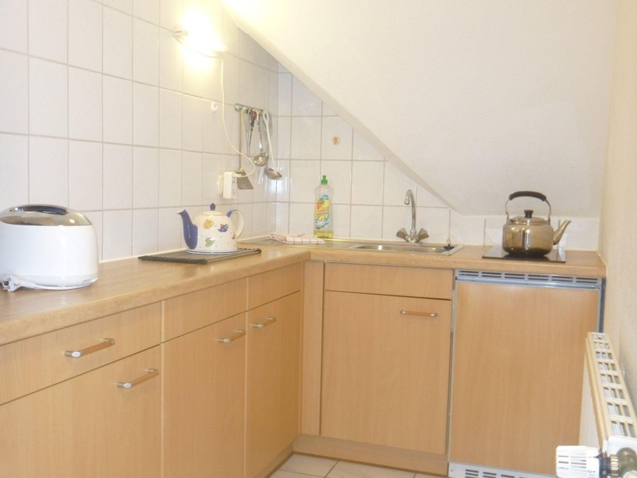Die 35m² große Ferienwohnung im Dach des Räucherhauses ist ausgestattet mit einer separaten Küchenzeile, Badezimmer mit Dusche und WC, sowie einem getrennten Wohn- und Schlafzimmer. Das Schlafzimmer bietet Platz für ein Doppelbett, sowie ein Einzelbett. Im Wohnzimmer steht Ihnen Sat-TV und WLAN zur Verfügung.
