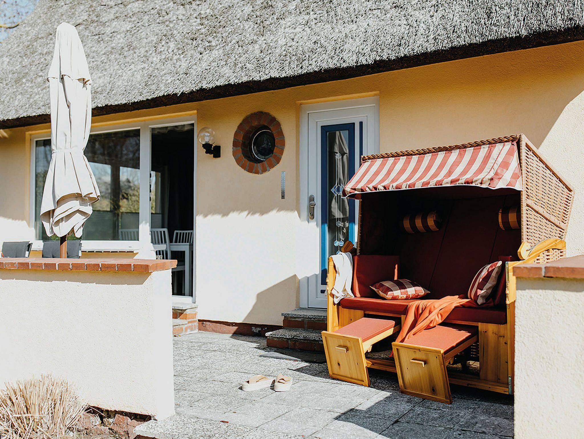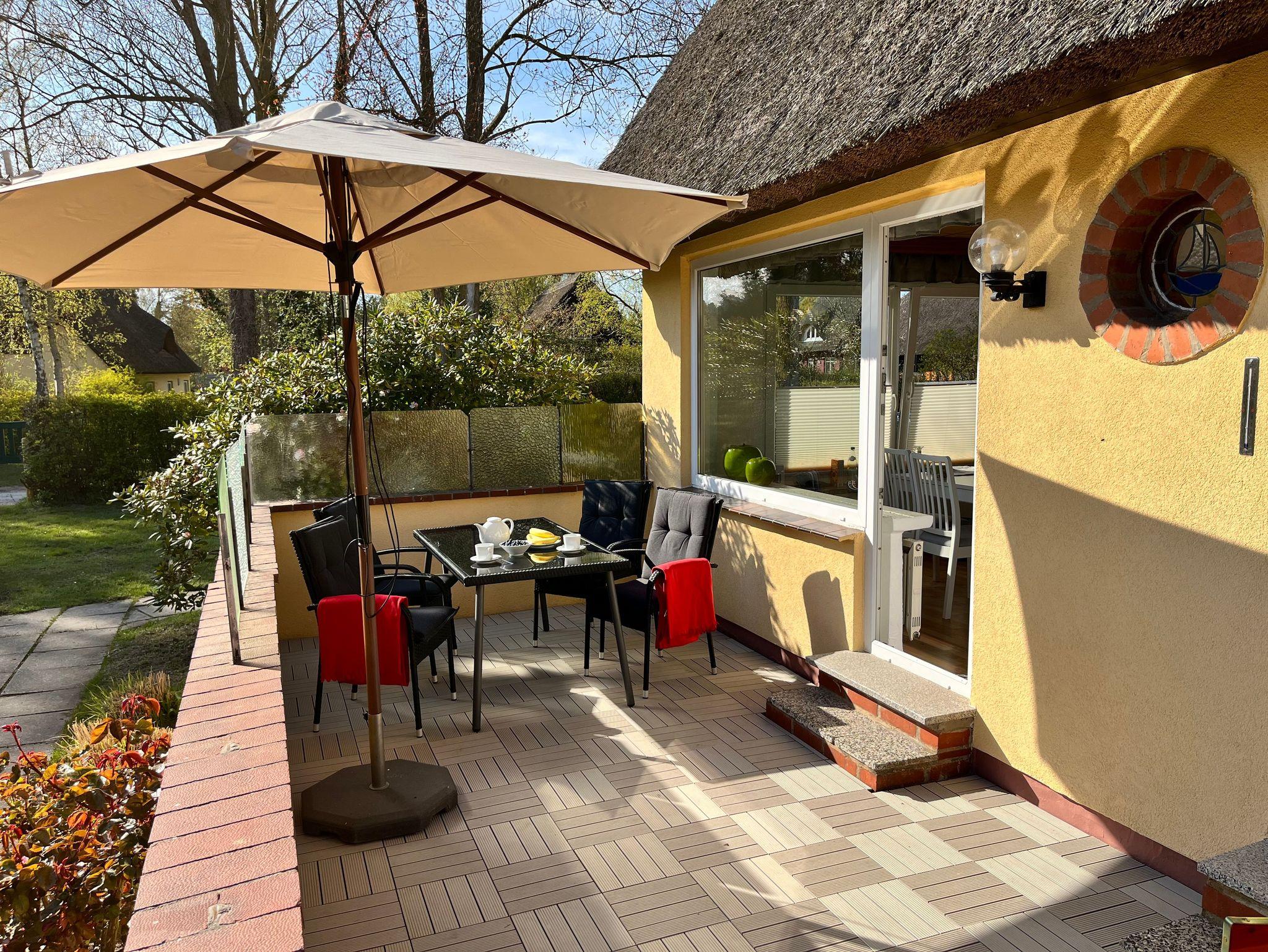 Im beliebten Urlaubsgebiet Zum Hohen Ufer befindet sich ein kleines reetgedecktes Ferienhaus mit einer Fläche von 60 qm auf einem 400 qm großen Grundstück zur Alleinnutzung in ruhiger Lage.