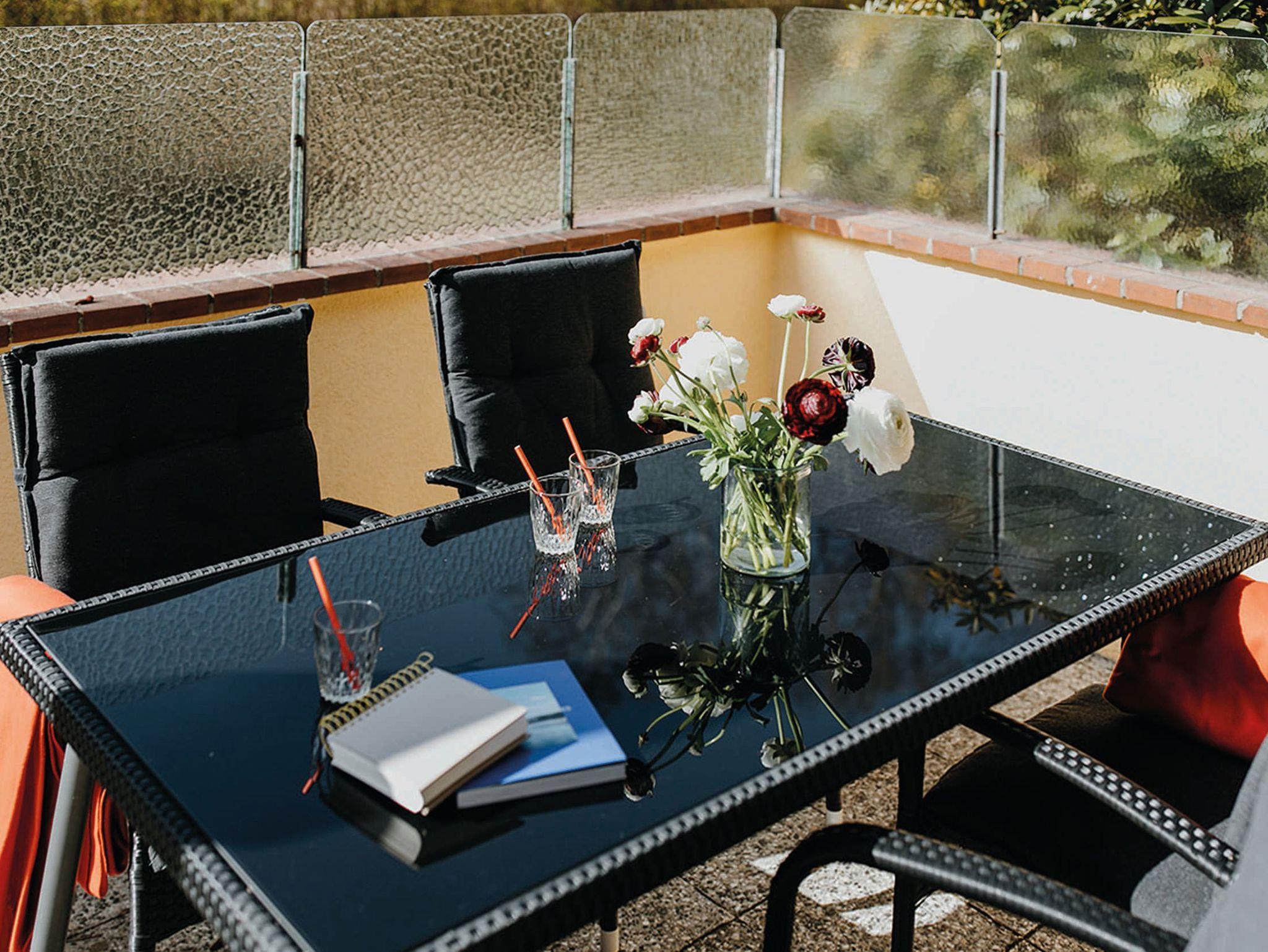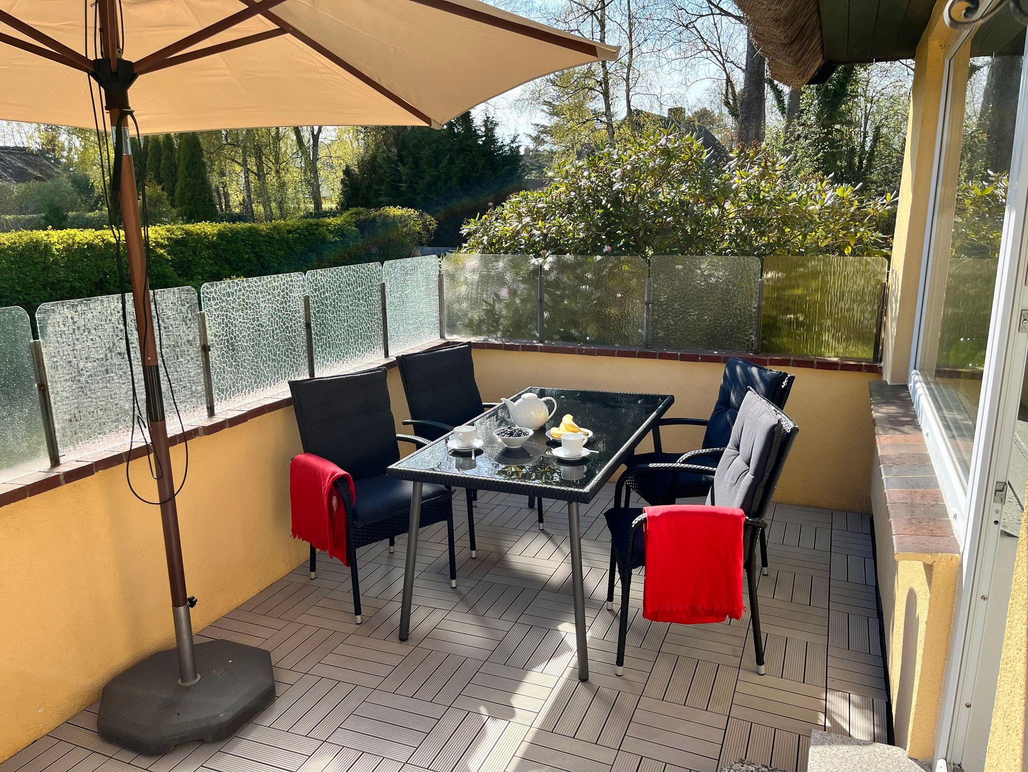 Sie genießen auf der Südterrasse die Nachmittagssonne , auf einer Sonnenliege oder klassisch am Gartentisch unter dem Sonnenschirm.
