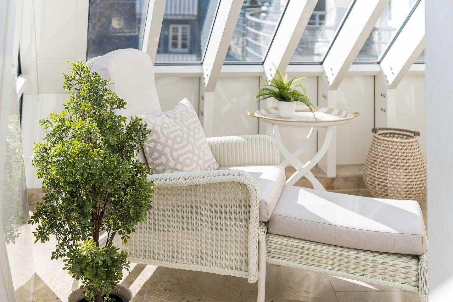 Von der Kunstpause aus genießen Sie einen herrlichen Blick auf den Bodden, der jeden Tag aufs Neue fasziniert. Der Wintergarten lädt dazu ein, den Moment bei einer Tasse Kaffee oder einem Glas Wein zu genießen, während der Sonnenuntergang die Landschaft in sanfte Farben taucht. Besonders schön lässt sich dieses Naturwunder auch vom kleinen Balkon am Wohnzimmer aus erleben, der den perfekten Platz bietet, um den Abend bei einem kühlen Getränk zu genießen und die Farben des Himmels in vollen Zügen auf sich wirken zu lassen.