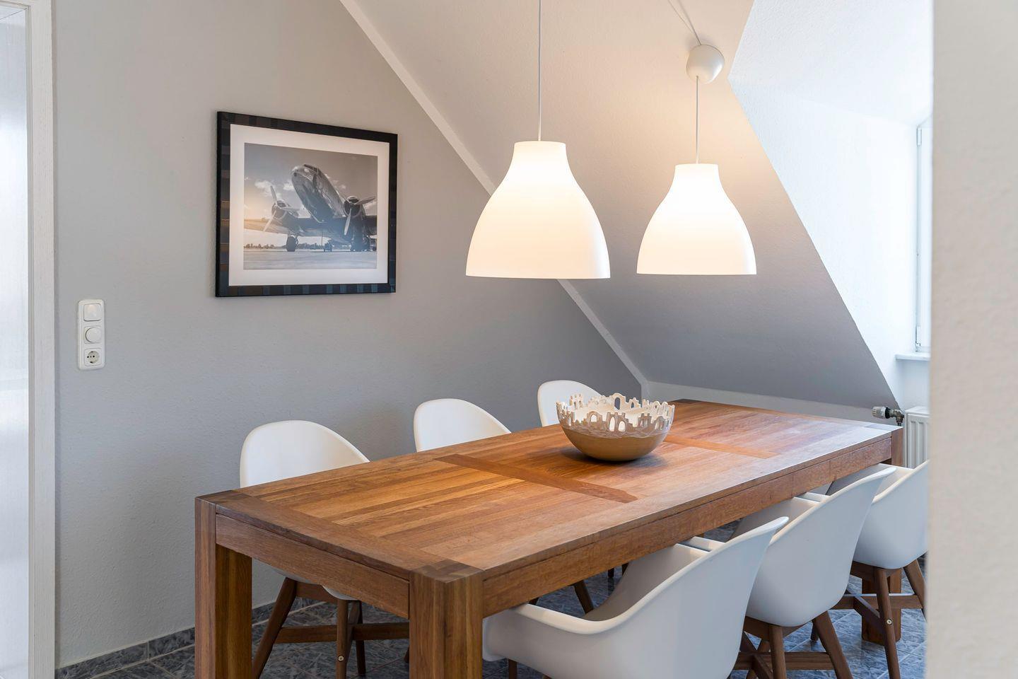 Mit 100 Quadratmetern Wohnfläche bietet die Kunstpause eine harmonische Mischung aus Weite und Geborgenheit. Zwei Schlafzimmer sorgen für Privatsphäre und Entspannung, während der großzügige Wohnbereich mit seinen warmen Farben und Kunstwerken eine einladende, gemütliche Atmosphäre schafft.