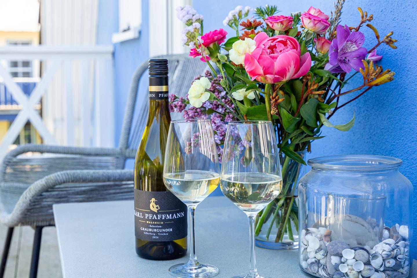 Der zur Wohnung gehörende Balkon mit Blick ins Grüne lädt zum Entspannen und Genießen ein. Ob für den ersten Kaffee des Tages an der frischen Ostseeluft oder mit einem Glas Wein am Abend. Zur Wohnung gehört zusätzlich ein PKW-Stellplatz.