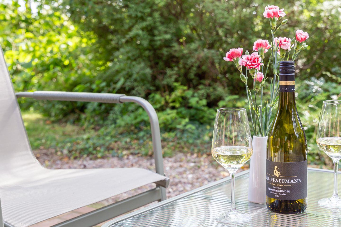 Draußen wartet auf dich die eigene Terrasse: ein geschützter Lieblingsplatz für Sonnenstunden, frische Luft und vielleicht ein Glas Wein am Abend. Ein Apartment wie gemacht für Alleinreisende oder Paare, die Ahrenshoop pur erleben möchten.