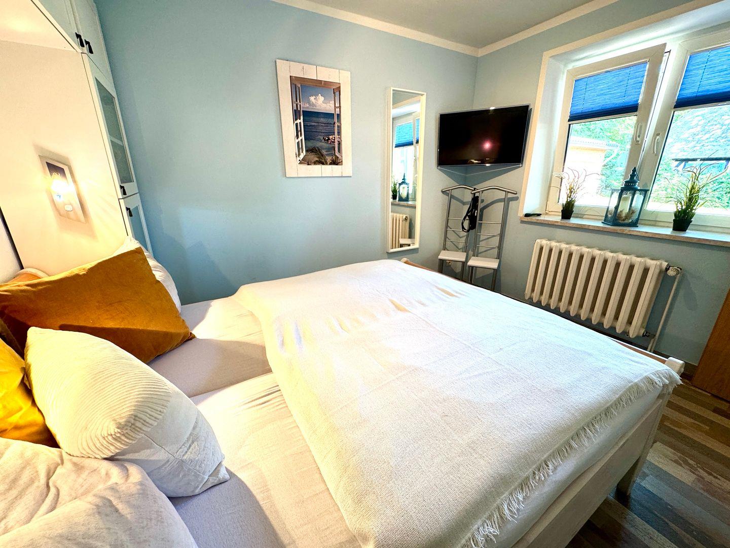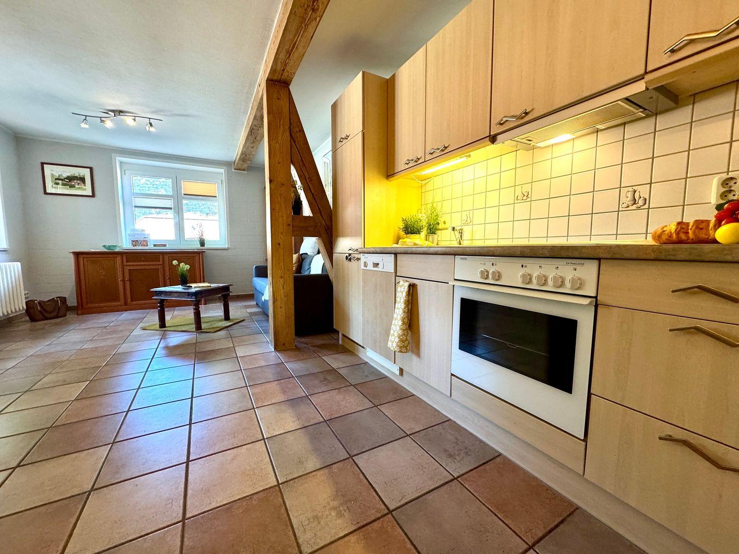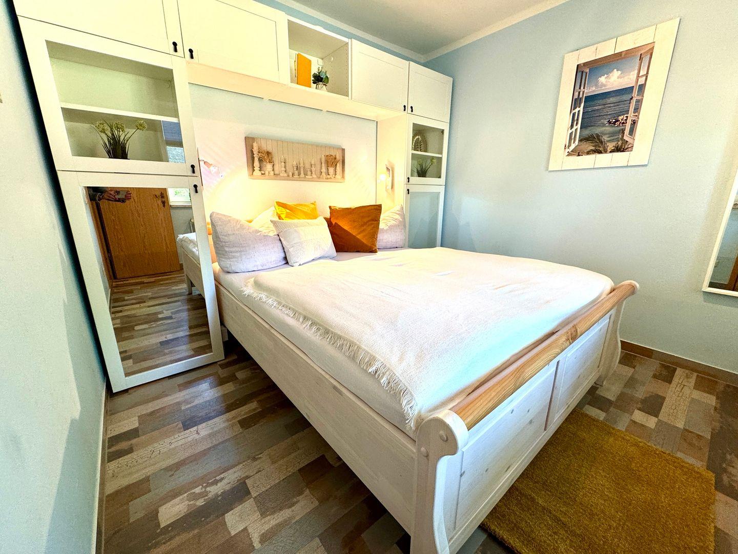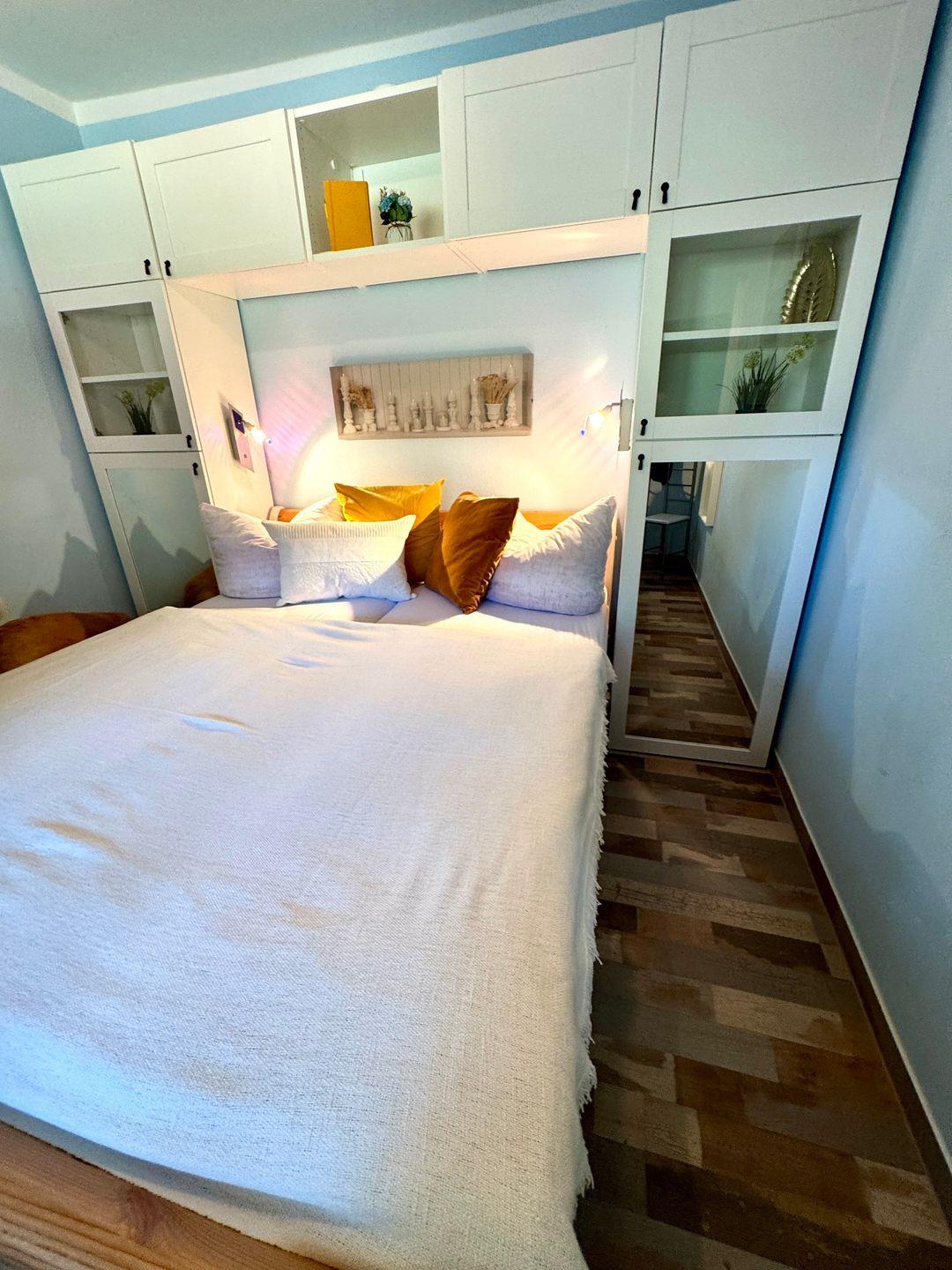 Die liebevoll eingerichtete Erdgeschoss-Ferienwohnung bietet Platz für Paare, kleine Familien oder Freunde. Sie verfügt über ein separates Schlafzimmer, ein Wohnzimmer mit Schlafcouch sowie eine offene Küche. Das Badezimmer mit Badewanne lädt nach einem erlebnisreichen Tag zum Entspannen ein.