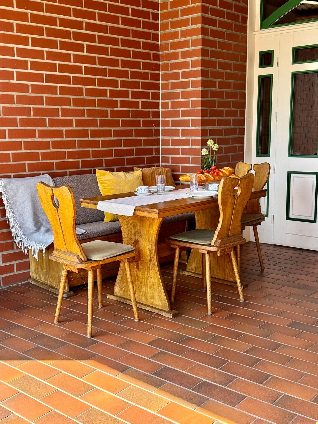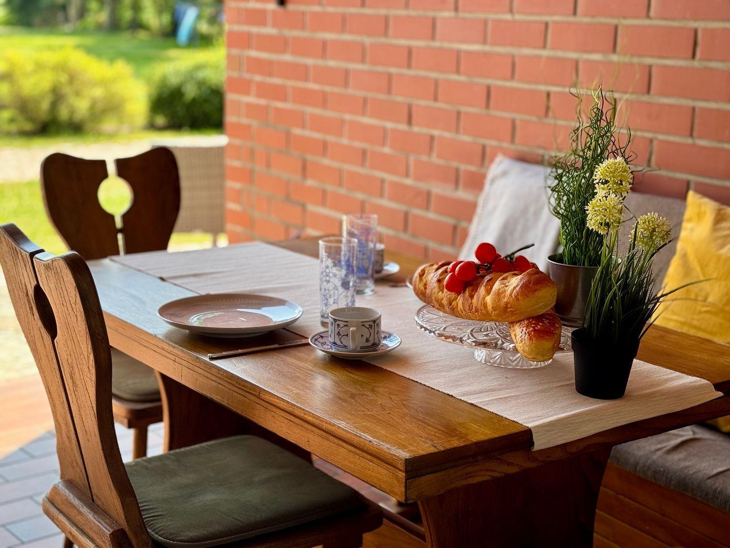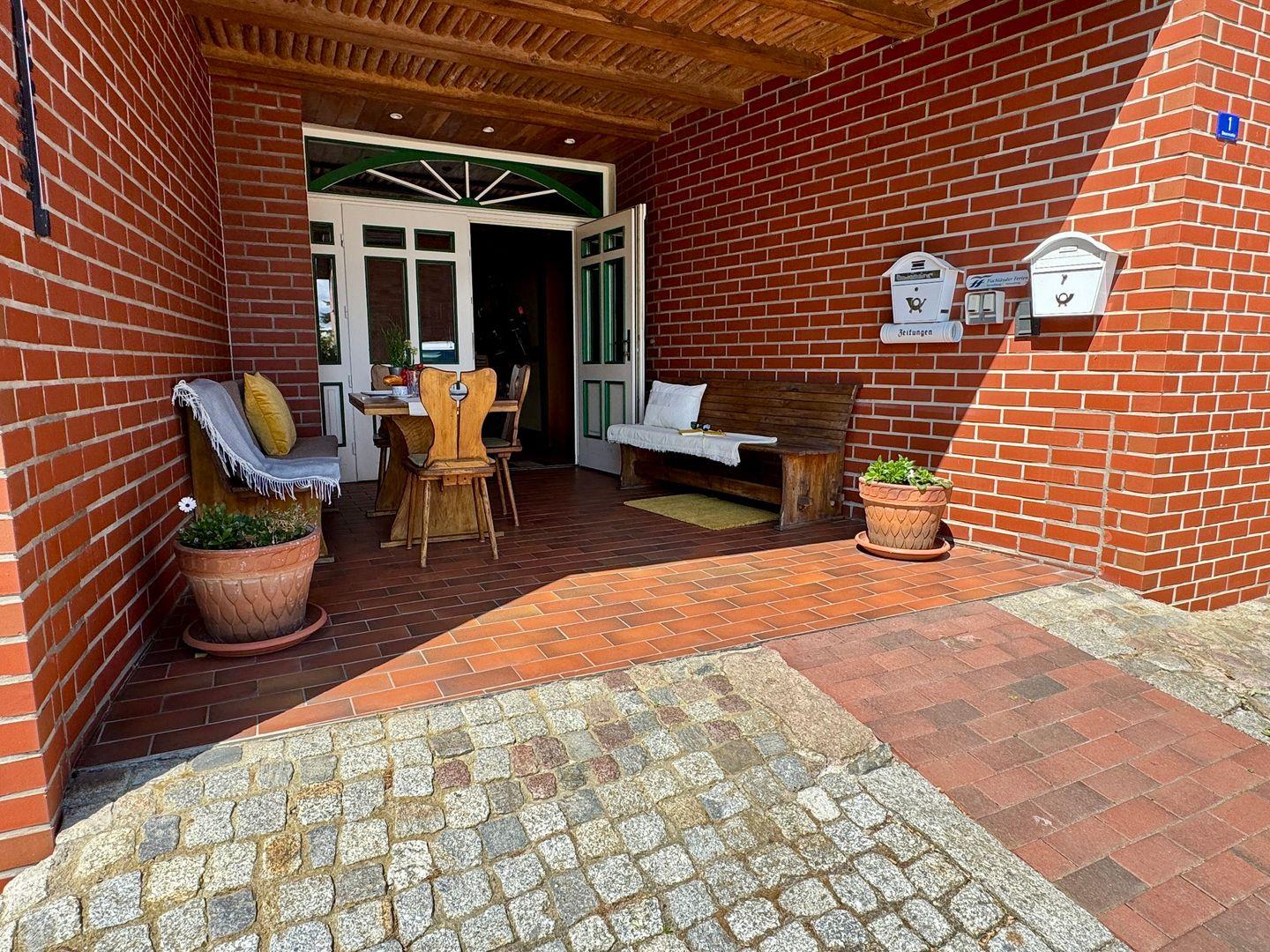 Im Außenbereich steht eine gemeinsame Sitzecke sowie ein gepflegter Garten zur Verfügung. Von hier aus haben Sie einen direkten Zugang zum Bodden, ideal zum Entspannen oder um die Natur zu genießen.