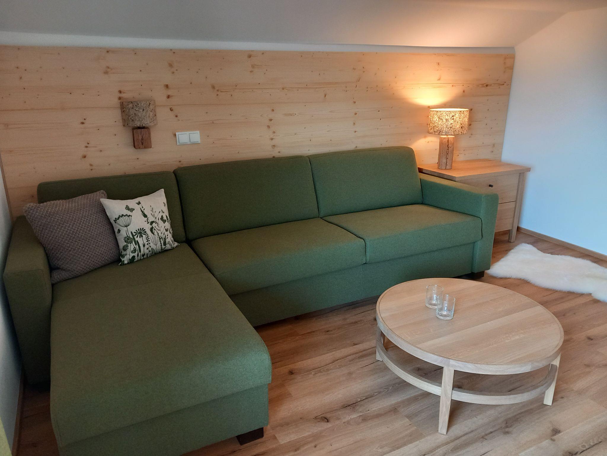Die neurenovierte Dachgeschosswohung Untersberg ist mit hochwertigen und gemütlichen Möbilar ausgestattet. Genießen Sie dies schöne Aussicht auf die Bergspitzen und auf unseren großen Spielplatz.