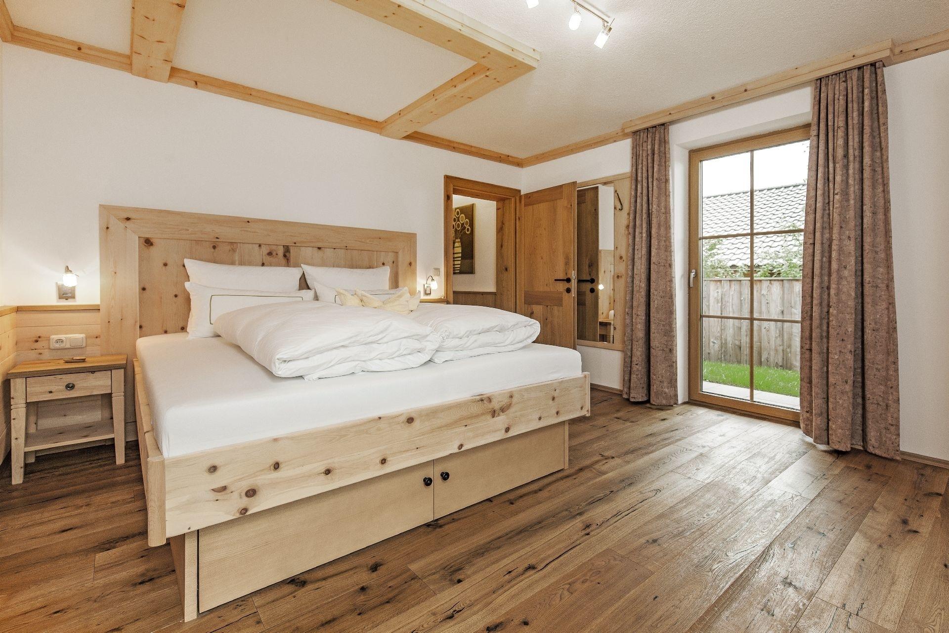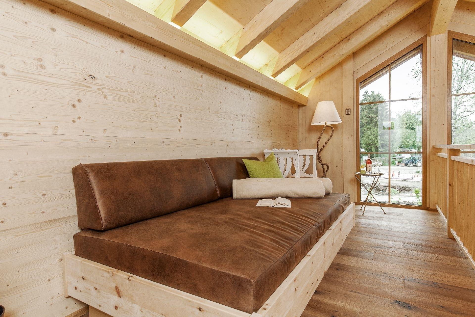 Das Garten-Chalet hat eine Wohnfläche von 145m², es verfügt über einen Wohnraum mit voll ausgestatteter Küche, ein Schlafzimmer im Parterre, ein großes Badezimmer mit DU/WC, ein zusätzliches abgeschlossenes Schlafzimmer im 1. Stock mit Balkon, DU/WC, eine gemütliche Galerie mit Sofa, eine private Sauna und einen privaten, mit bis zu 40° beheizten Außen-Whirlpool. Das Garten-Chalet verfügt über einen privaten und eingezäunten Garten, sowie über einen eigenen Parkplatz direkt am Chalet.