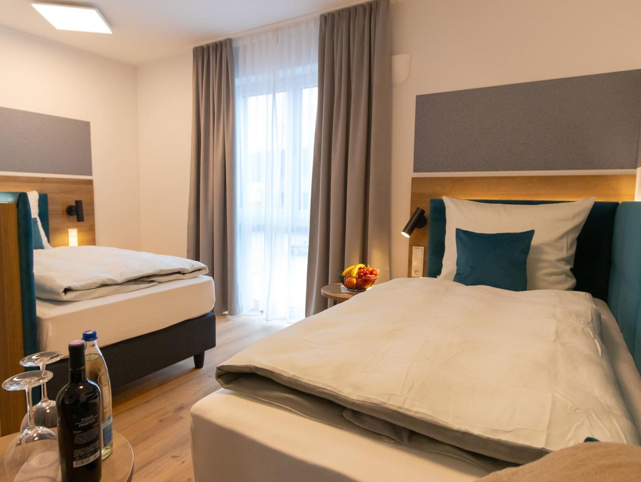 2 praktische Doppelzimmer mit getrennten Betten, etwa 22qm gross.