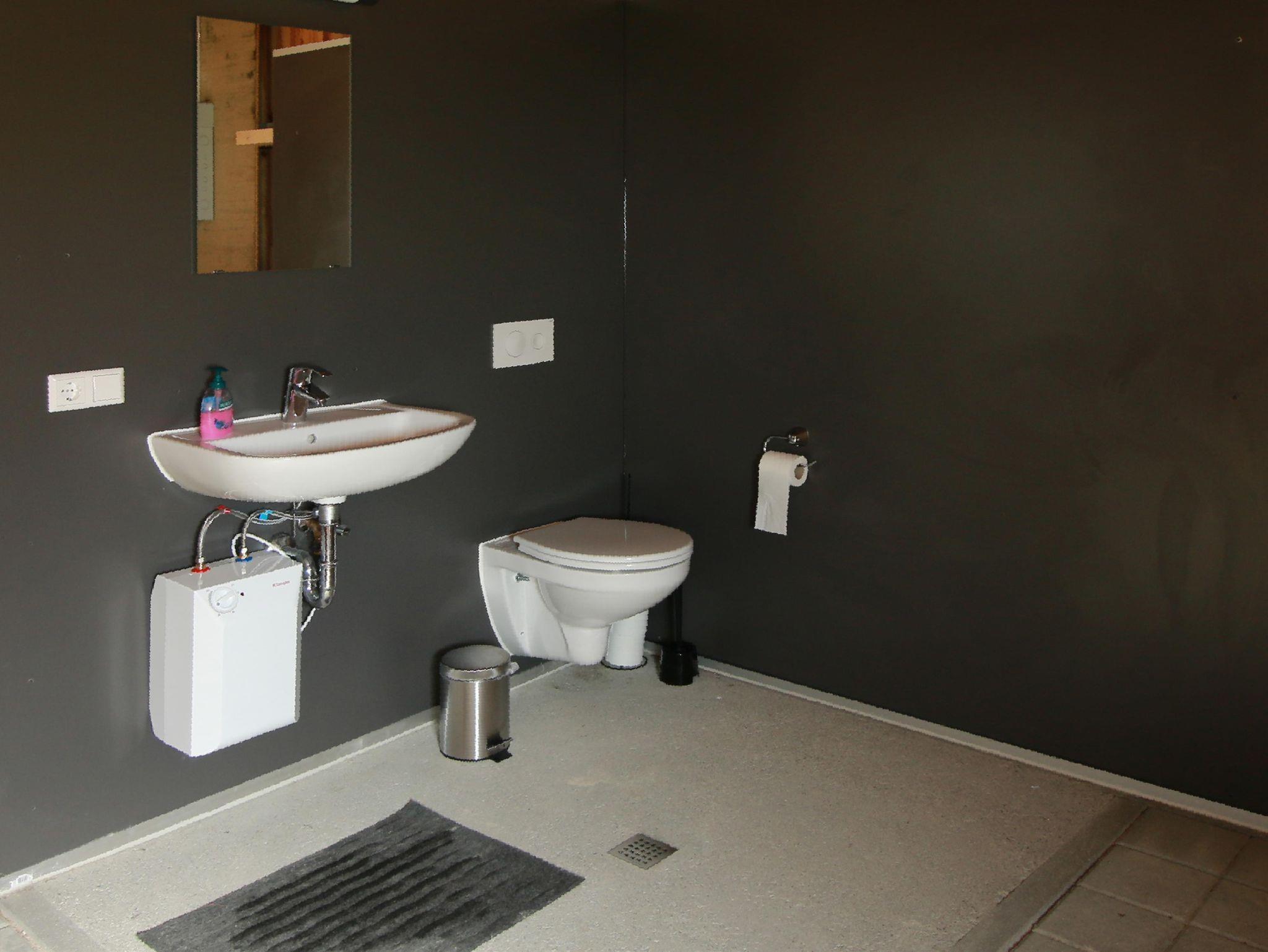 Die Sanitärgebäude sowie alle weiteren Einrichtungen des Campingplatzes befinden sich auf der darunter liegenden Campingplatz-Ebene und sind bequem über eine Treppe zu erreichen.