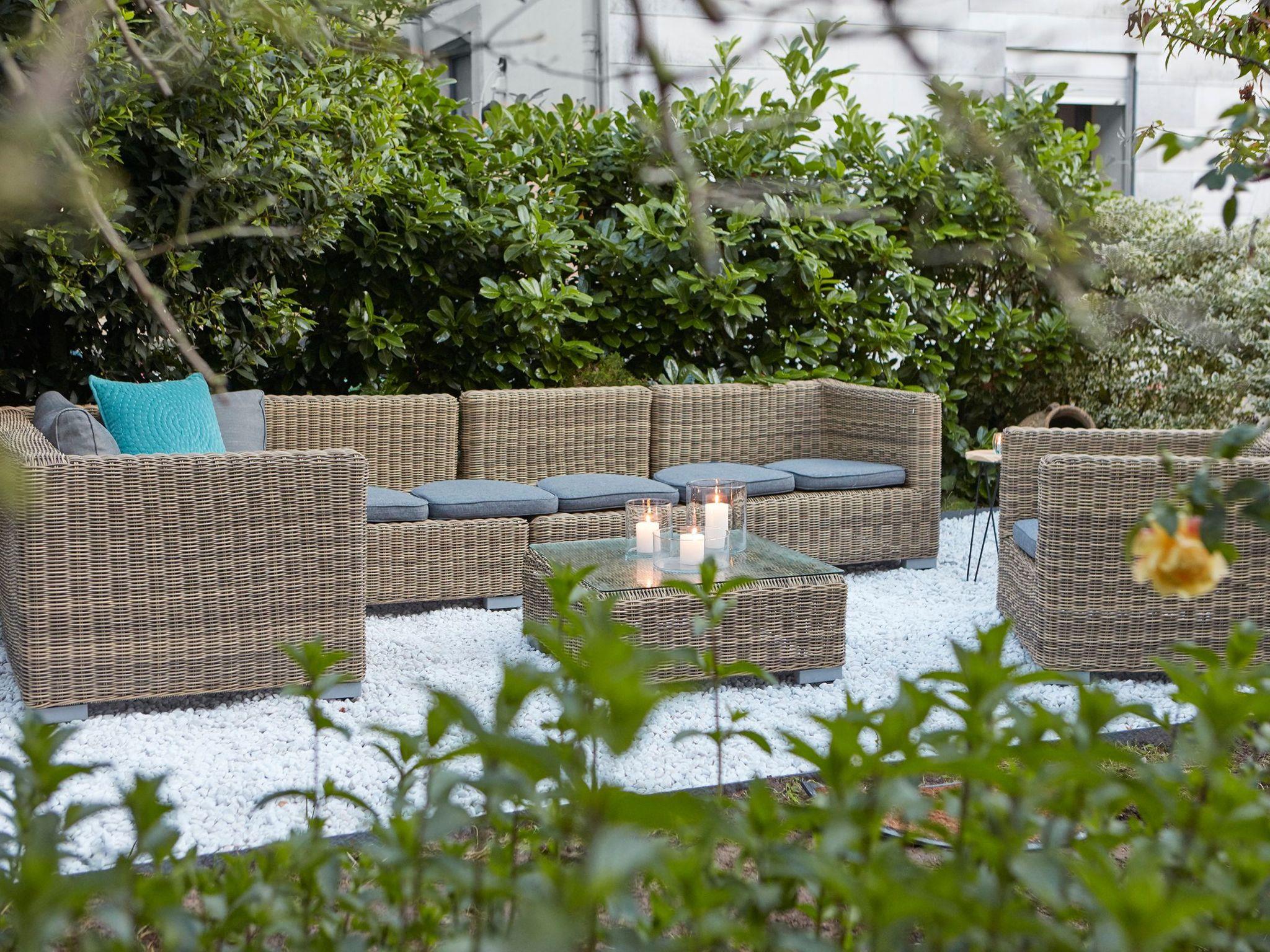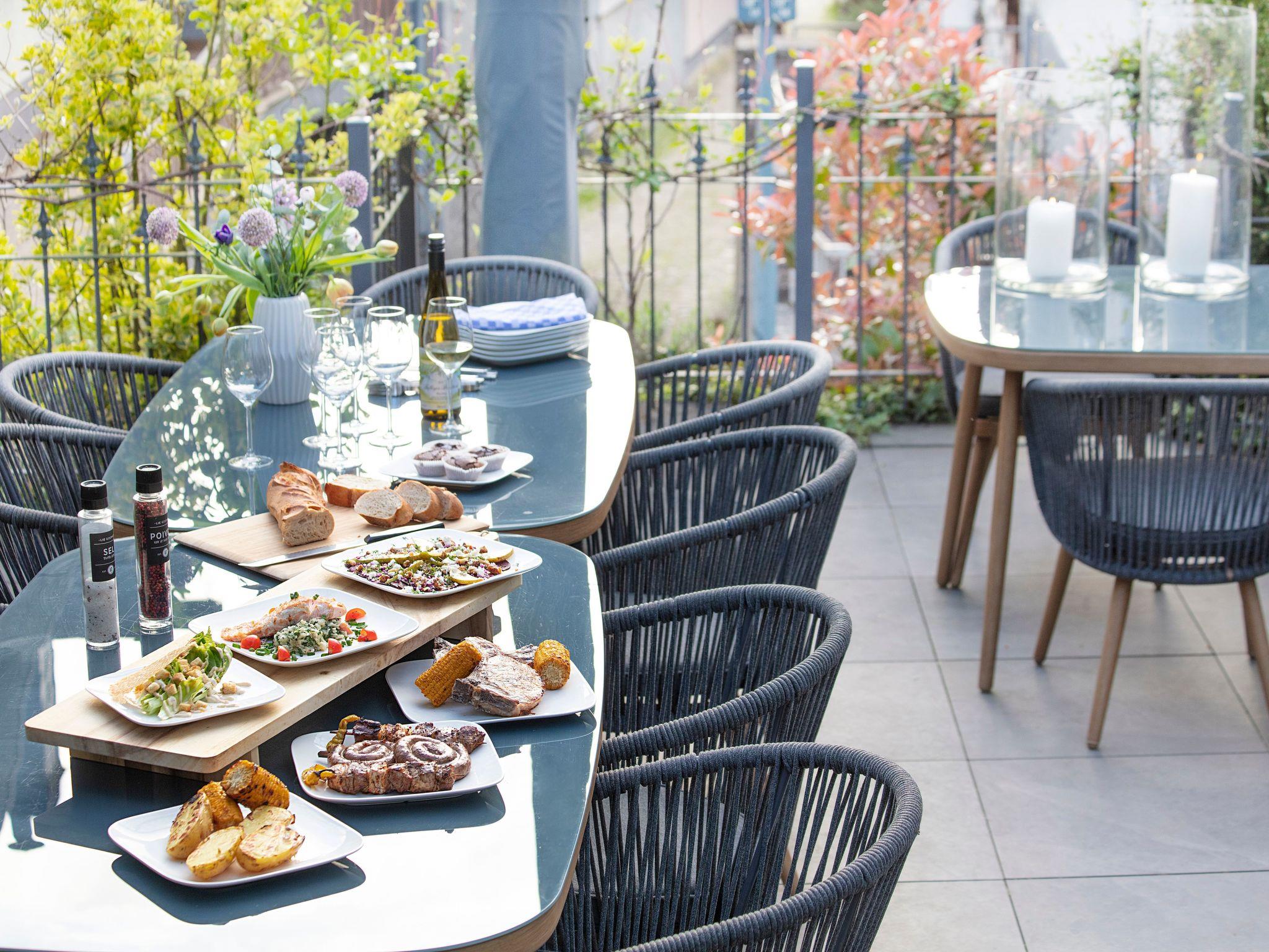 - Terrace with garden furniture, lounge corner and 2 sun islands as well as a large gas barbecue