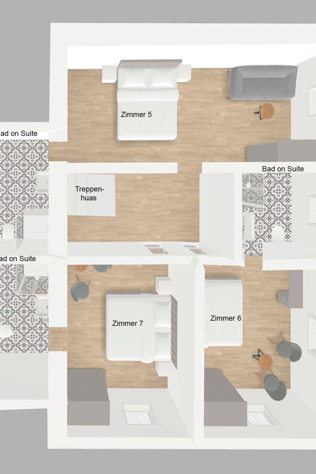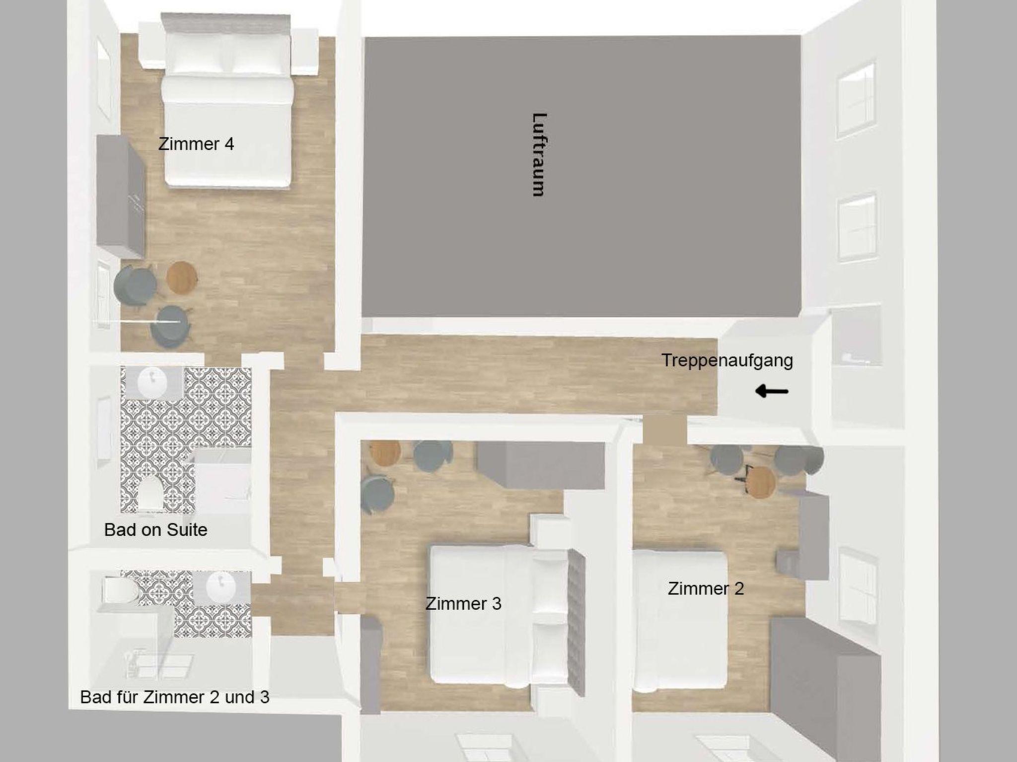 This holiday home impresses with a successful fusion of modern design and the historic charm of the building. In addition to the authentic details such as the original building structures, a Cologne mirror-relief stucco ceiling adorns one of the bedrooms. With a total of 7 bedrooms, 6 bathrooms and a spacious communal area consisting of a dining room, living room, open-plan kitchen and a stylish bar, this property offers everything you need for a relaxing stay.