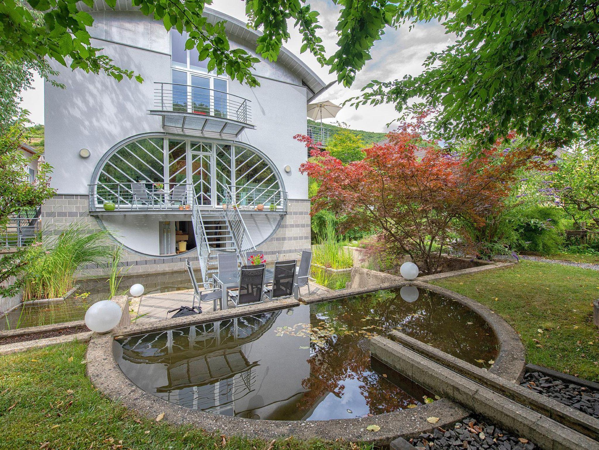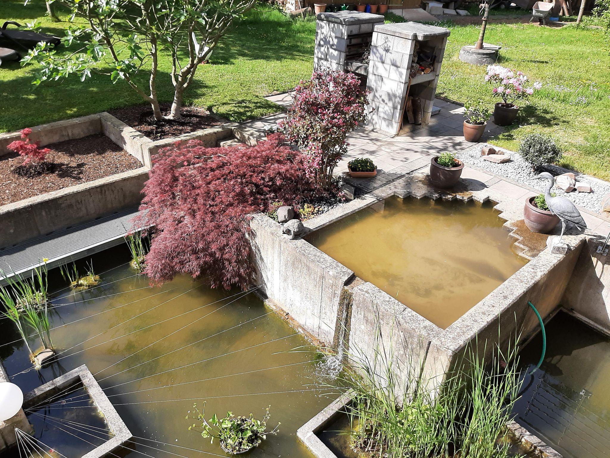 Von Ihrer Ferienwohnung gelangen Sie in unseren großzügigen Garten mit Liegewiese (Sonnenliegen) und Teichanlage, in der sich zahlreiche Koi's befinden. Auch eine Grillstelle ist vorhanden, die Ihnen zur Verfügung steht.
