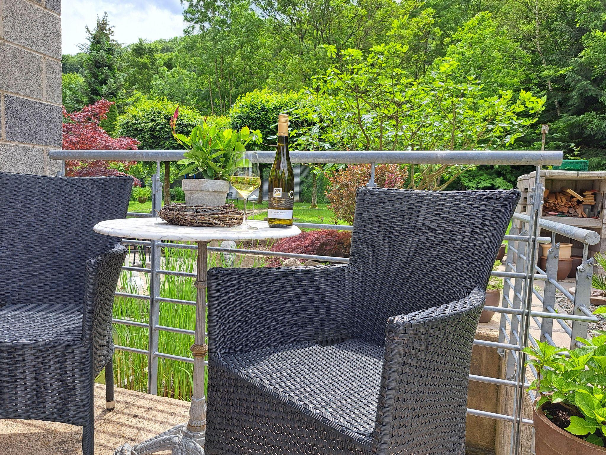 Die Ferienwohnung hat einen eigenen Freisitz mit 4 Sesseln und eine separate Parkmöglichkeiten unmittelbar am Haus. Motorräder können im Carport untergestellt werden.
