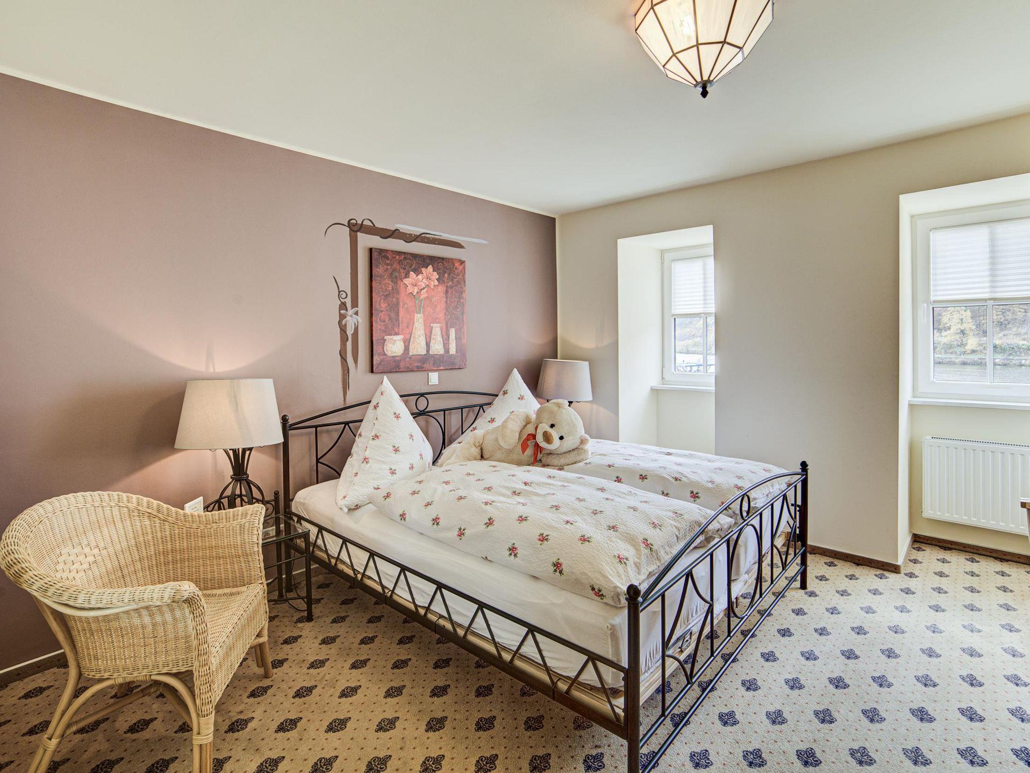 Unser Apartment Nr. 6 liegt im 2. OG und ist die Perle unserer Apartments. Dieses Superior - Apartment bietet Ihnen einen riesigen Wohnbereich, Eingangsbereich und ein separates Schlafzimmer mit Komfortbetten. Eine Kaffee- & Teeküche, Minibar und Balkon mit Sitzbereich sind einige der Zahlreichen Annehmlichkeiten die das Zimmer zu bieten hat. Vom Balkon aus genießen Sie einen herrlichen Blick auf die Mosel und die teils eigenen Weinberge am Haus. Freies WLAN und kostenlose Parkplätze stehen Ihnen am Hotel kostenfrei Verfügung. Unser Täglicher Zimmerservice sorgt für gemachte Betten und steigert Ihren Wohlfühlfaktor. Durch unser Angeschlossenes Restaurant sind Sie natürlich auch bestens versorgt. Hier laden wir Sie ein, die kulinarischen Köstlichkeiten unserer Region mit spitzen Weinen zu genießen.