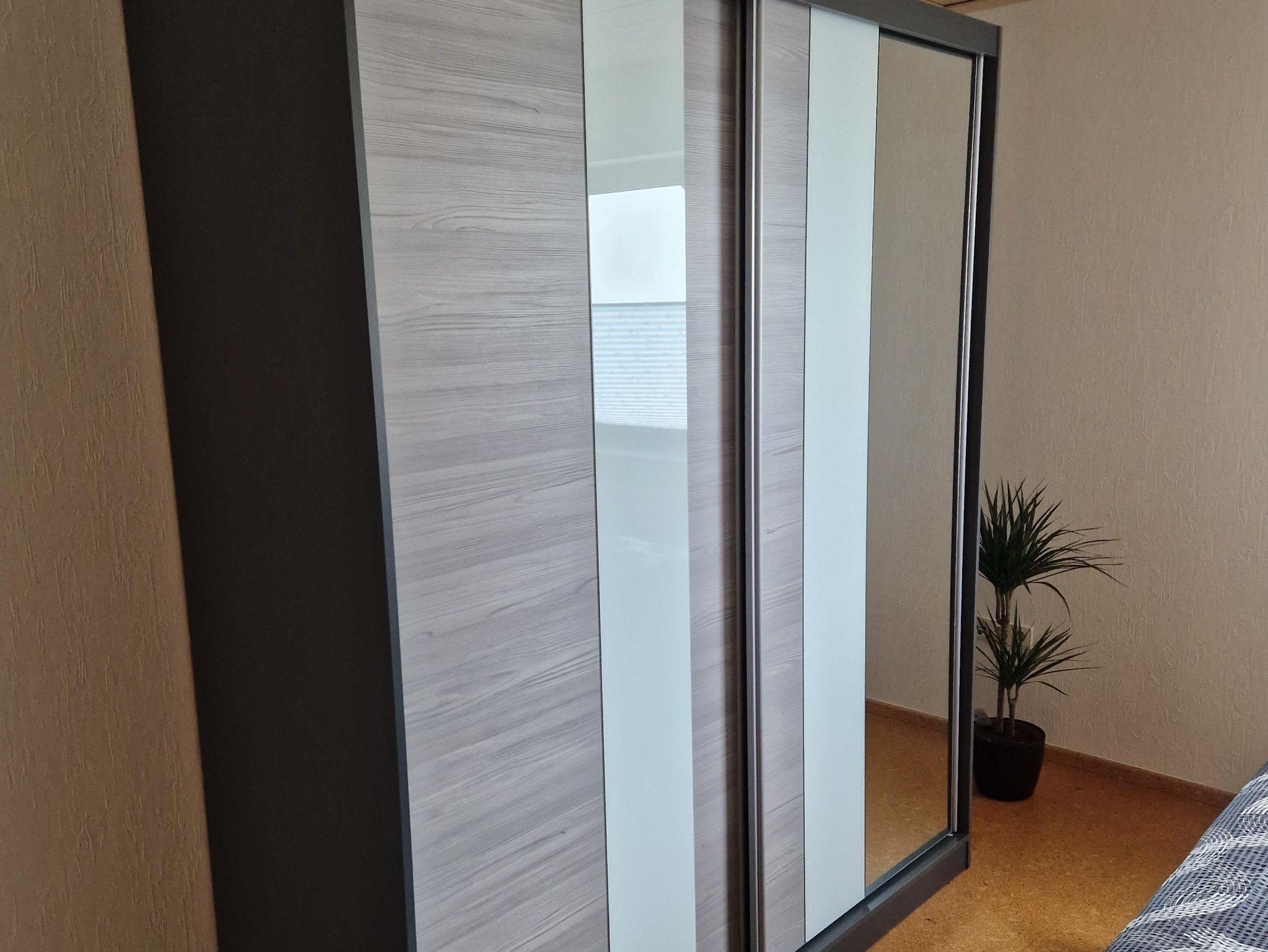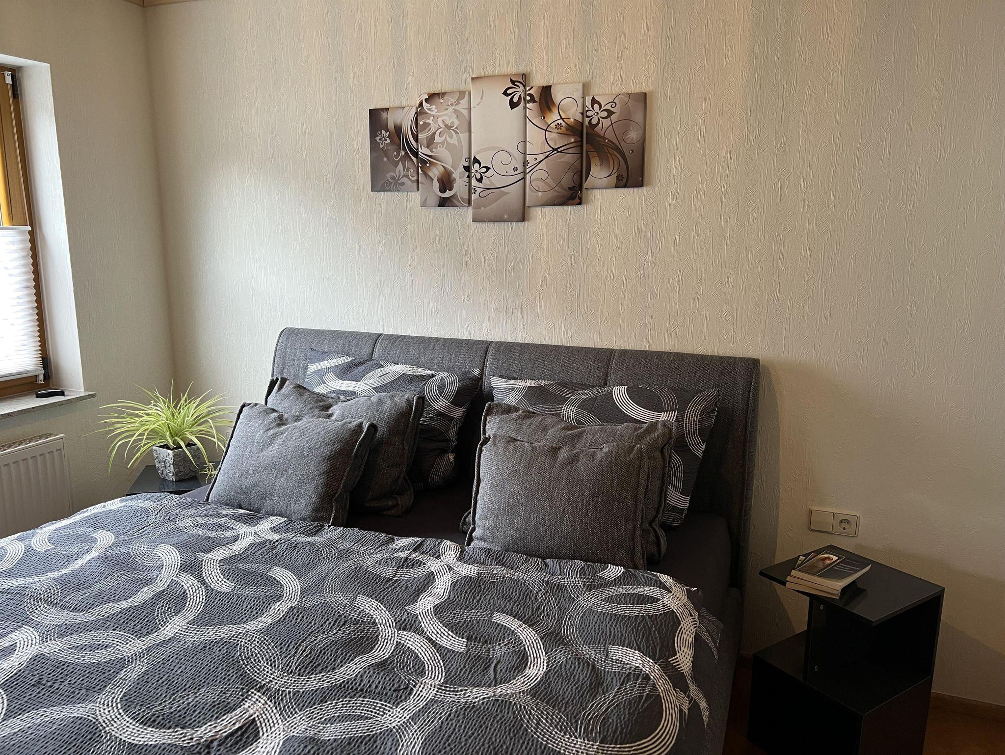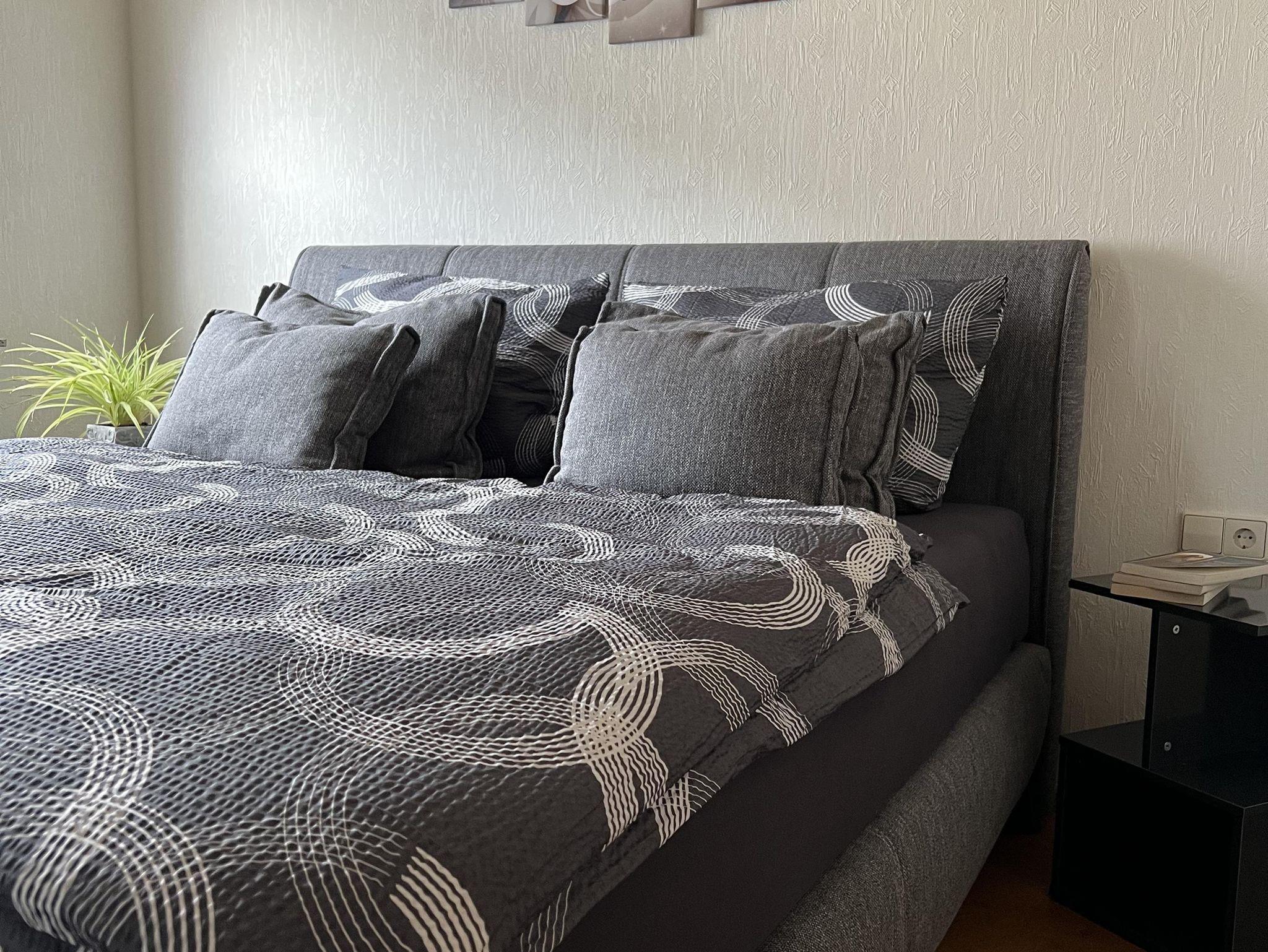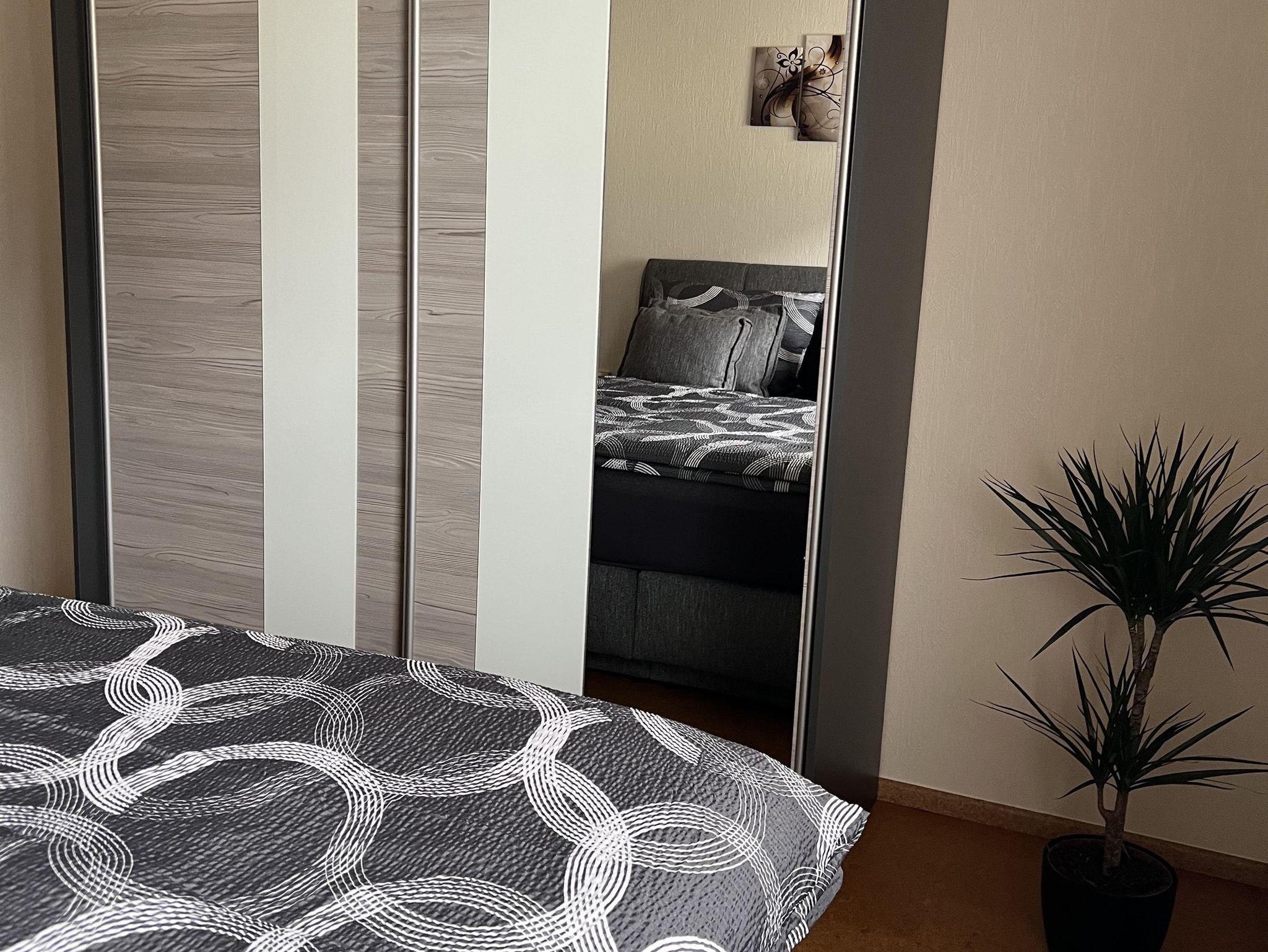 Im Schlafzimmer befindet sich neben einem zweitürigen Schiebeschrank mit Spiegel auch ein großes Boxspringbett (180x200 m). Eine Seite ist belastbar bis 140 kg. Direkt neben dem Bett sind auf jeder Seite Lichtschalter und ein Nachttisch. Im Kleiderschrank steht Ihnen ein kleiner Safe zur Verfügung.