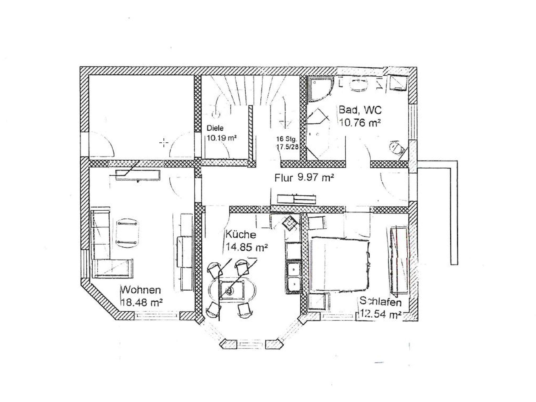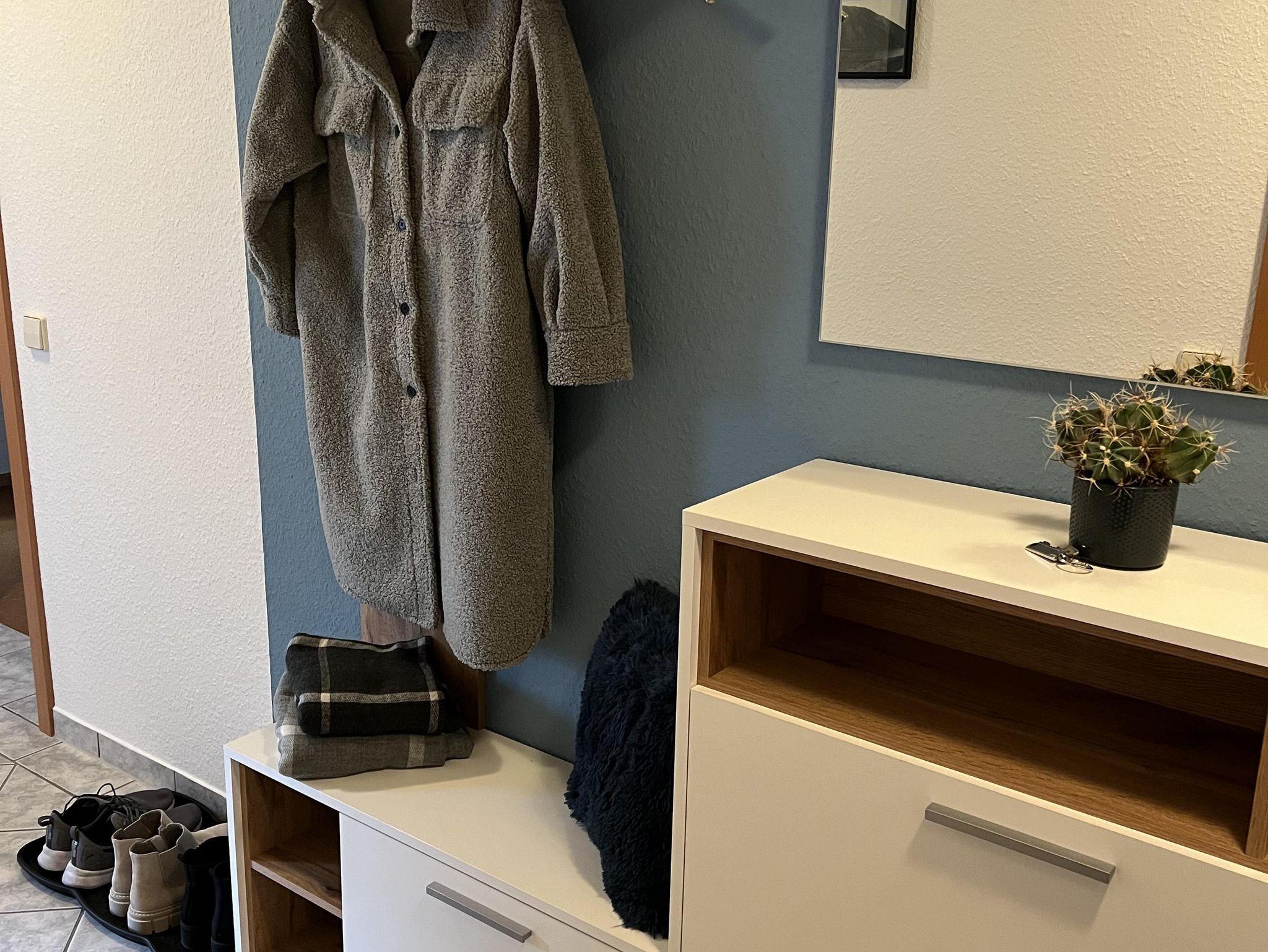 Der Eingangsbereich ist der zentrale Verbindungsweg zu allen weiteren Räumlichkeiten. Möbliert ist der Flur mit einer Garderobe. Daneben stehen Ihnen hier auch ein Schuhschrank sowie Schuh-Abtropfschalen zur Verfügung.