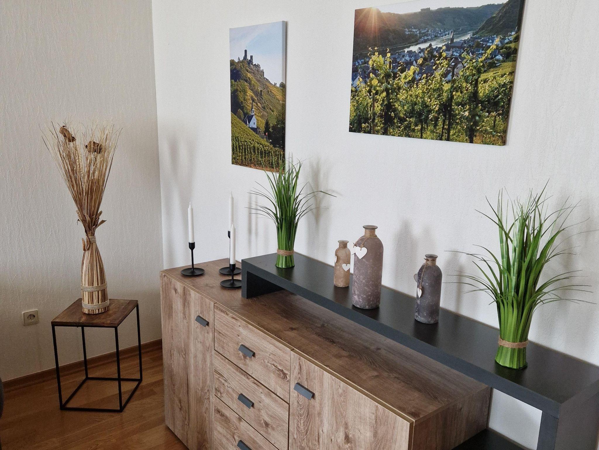 Inmitten der romantischen Weinregion Mosel liegt der historische Ort Alken, in dem sich unsere Ferienwohnung MOSELZEIT befindet. Neben gutem Wein und moselländischem Essen, besticht Alken mit seiner malerischen Kulisse, vielen Sehenswürdigkeiten und einer perfekten Ausgangslage für Fahrrad- und Wandertouren sowie für Ausflüge in die Region. Einkaufsmöglichkeit und Einkehr ist vorhanden.Unsere neu renovierte Ferienwohnung (65 m²) bietet Ihnen alles, was Sie für einen erholsamen Urlaub an der Mosel benötigen. Die barrierefreie Unterkunft verfügt über ein Schlafzimmer, eine Küche, ein Wohnzimmer, ein Badezimmer, einen Abstellraum und einen Flur.