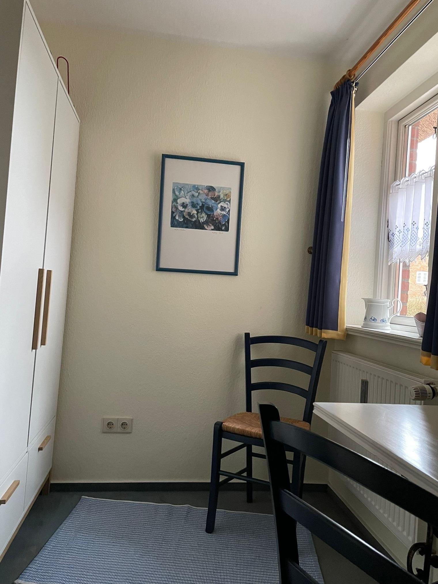 Diese Ferienwohnung in Alkersum werden Sie lieben! Genießen Sie Ihren Urlaub auf 60 m² mit ausreichend Platz für bis zu 4 Personen und Kleinkind. Sie befindet sich im EG eines 1999 erbauten Reetdachhauses in Alkersum und ist gemütlich und komfortabel ausgestattet. Die Wohnung wurde 2023 komplett und umfassend renoviert. Direkt am Haus befindet sich die großzügige Terrasse. Hier werden Sie gelassen und entspannt Ihren Urlaub verbringen, weit weg vom Trubel der Großstadt. Die Wohnung besteht aus 1 Badezimmer, 2 Schlafzimmern, dem Wohnraum mit Essecke und einer gut ausgestatteten neuen Einbauküche (Geschirrspüler, Backofen sowie ausreichend Geschirr usw.). Hier finden Sie alles für einen angenehmen und erholsamen Urlaub. Das Schlafzimmer ist mit einem Doppelbett ausgestattet. Am Haus befindet sich ein Stellplatz für's Auto sowie ein Fahrradständer für Ihre Fahrräder. Im Keller befinden sich Waschmaschine und Trockner (gegen Gebühr).