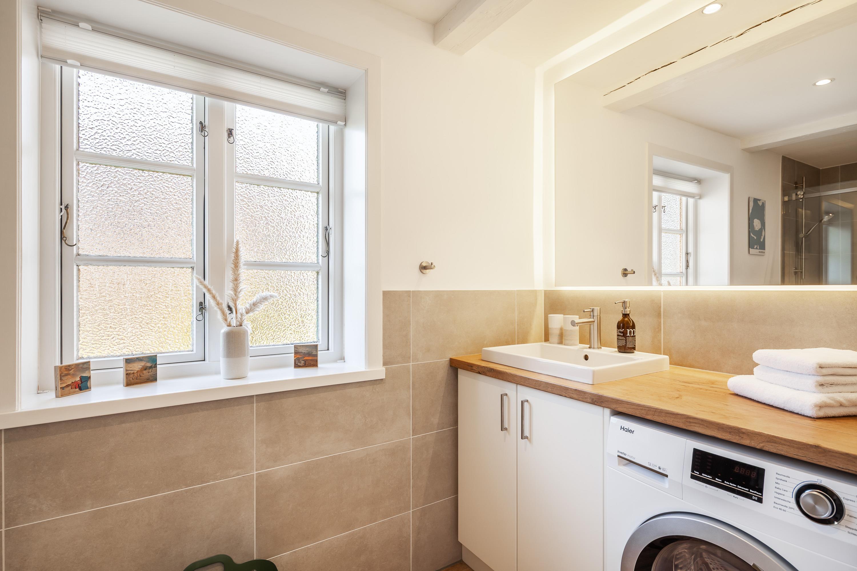 Neben Waschmaschine und modernen Küchengeräten runden Flachbildfernseher und schnelles Internet die technisch hochwertige Ausstattung ab.