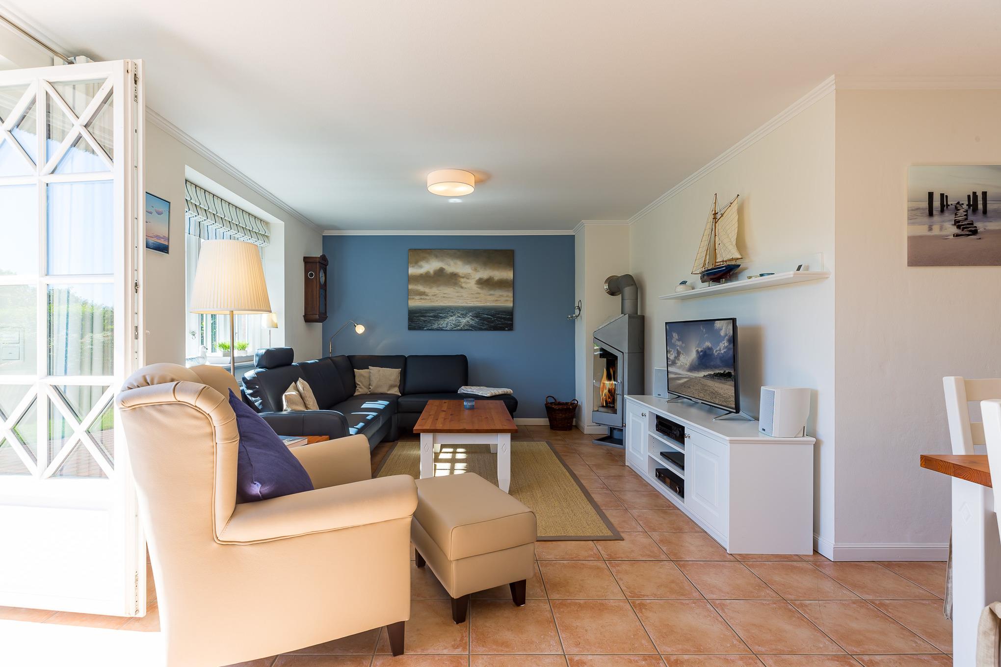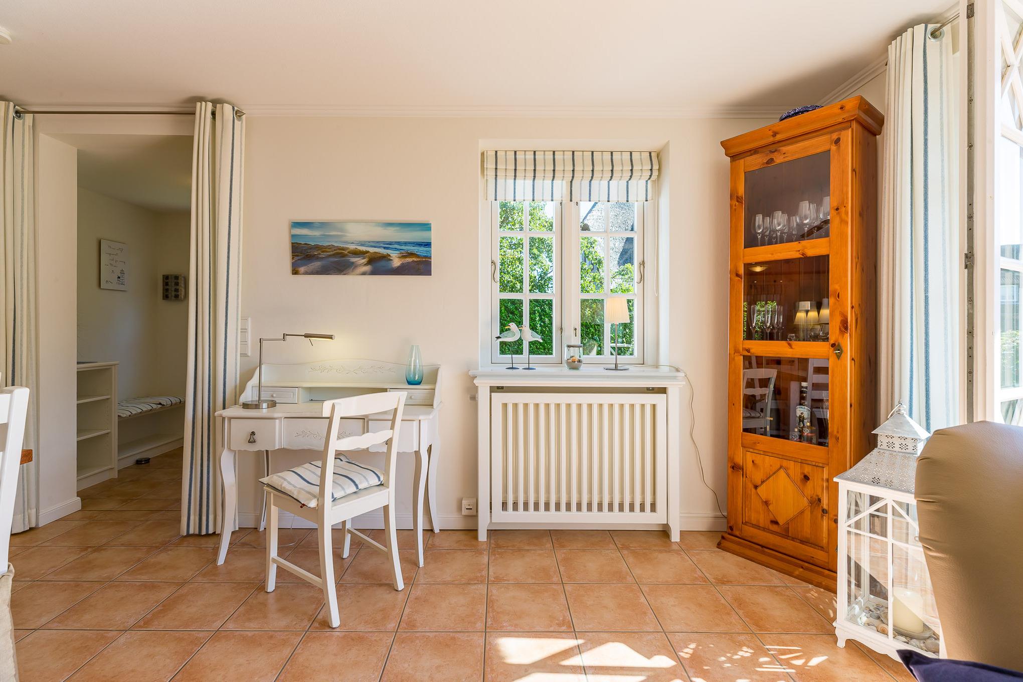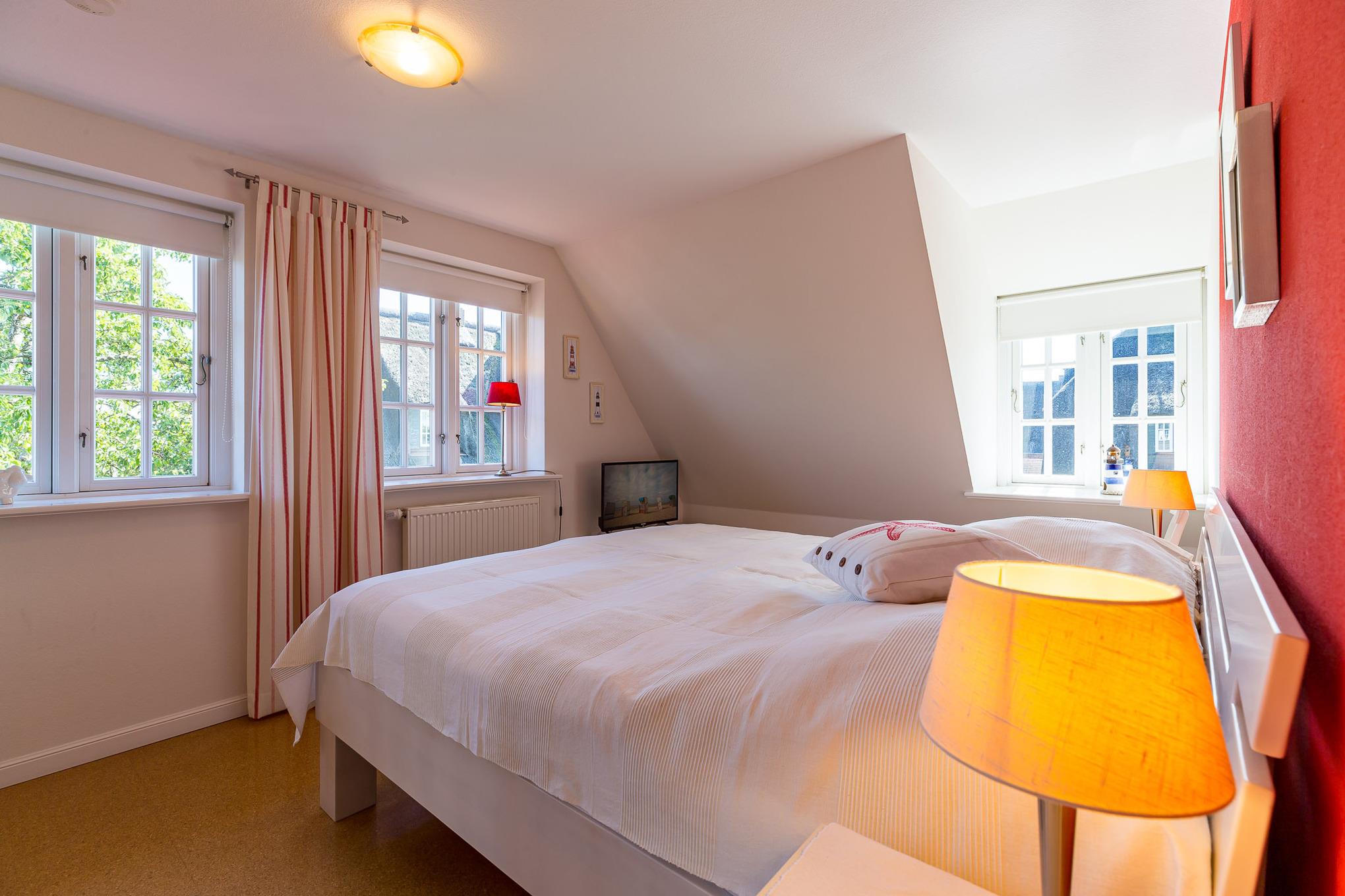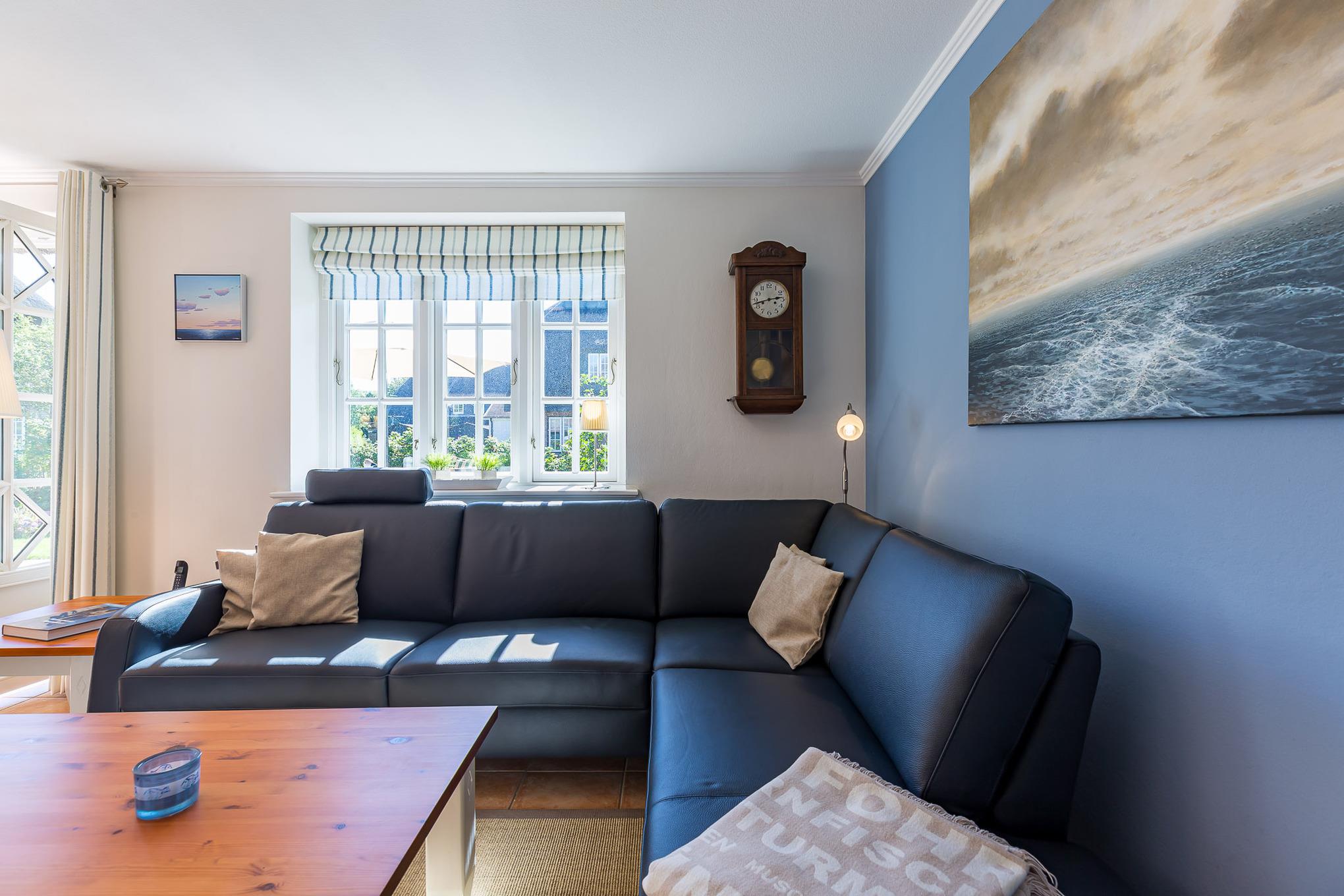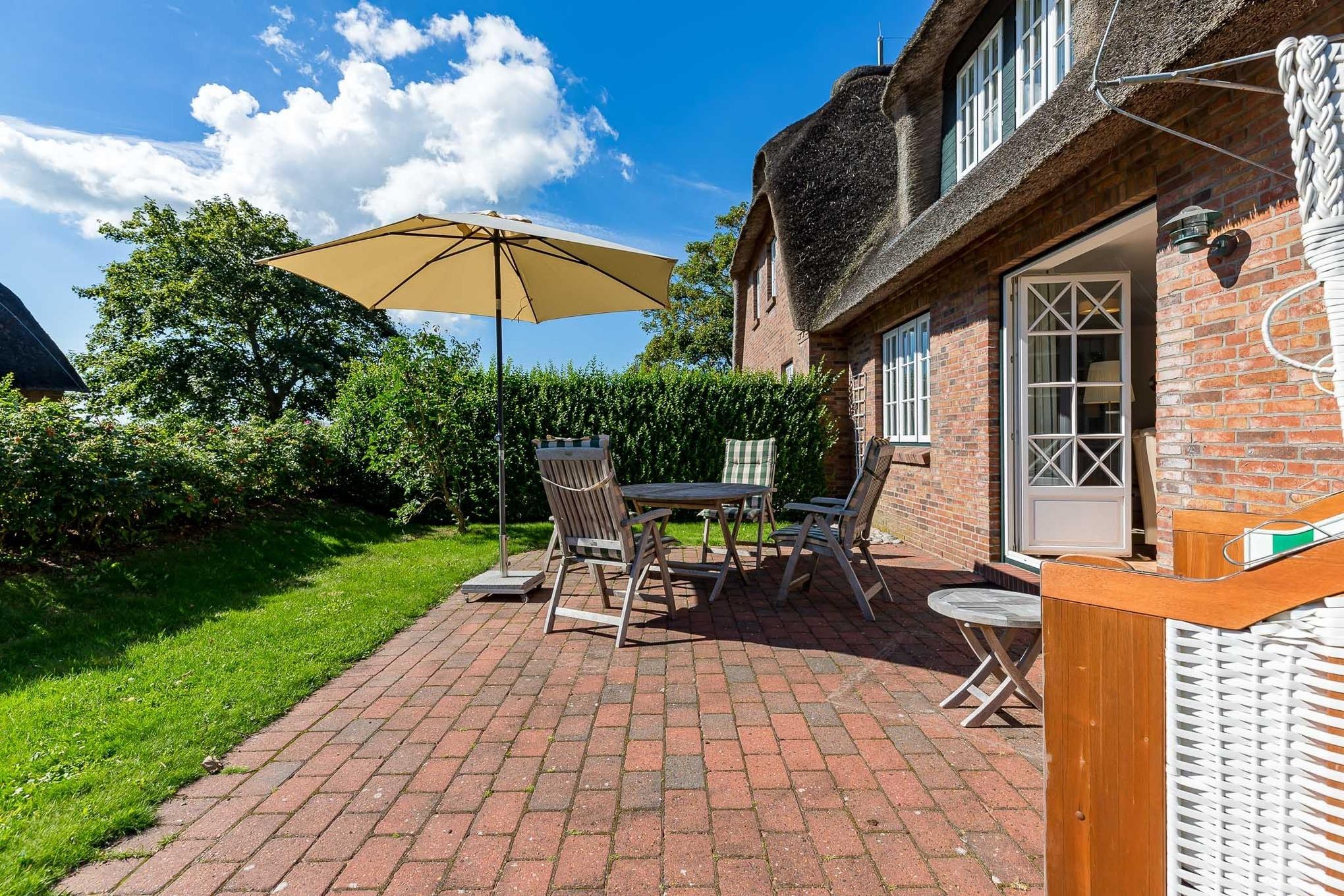 Ihr Urlaub im Haus Alkersum. In dieser Doppelhaushälfte unter Reet werden Sie sich sicher wohlfühlen. Der großzügige Garten und die traumhafte Randlage an der Marsch bieten Ihnen ein Umfeld, wie Sie es auf der Insel Föhr nicht oft wiederfinden. Hier werden Sie gelassen und entspannt Ihren Urlaub verbringen, weit weg vom Trubel der Großstadt. Im kleinen Örtchen Alkersum befindet sich das weitbekannte Museum Kunst der Westküste mit wechselnden Ausstellungen, das immer einen Besuch wert ist. Ein Bäcker, ein Hofladen und ein Reiterhof runden den Ortsdurchgang ab. Wem das nicht reicht, der kommt im nahe gelegenen Friesenort Nieblum sicher auf seine Kosten oder startet gleich ins ca. 5 km entfernt gelegene Städtchen Wyk.