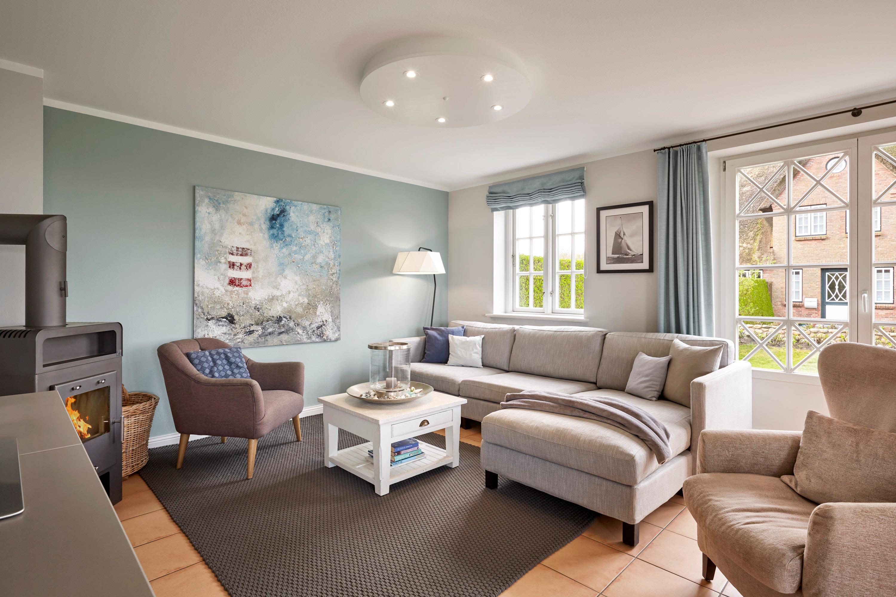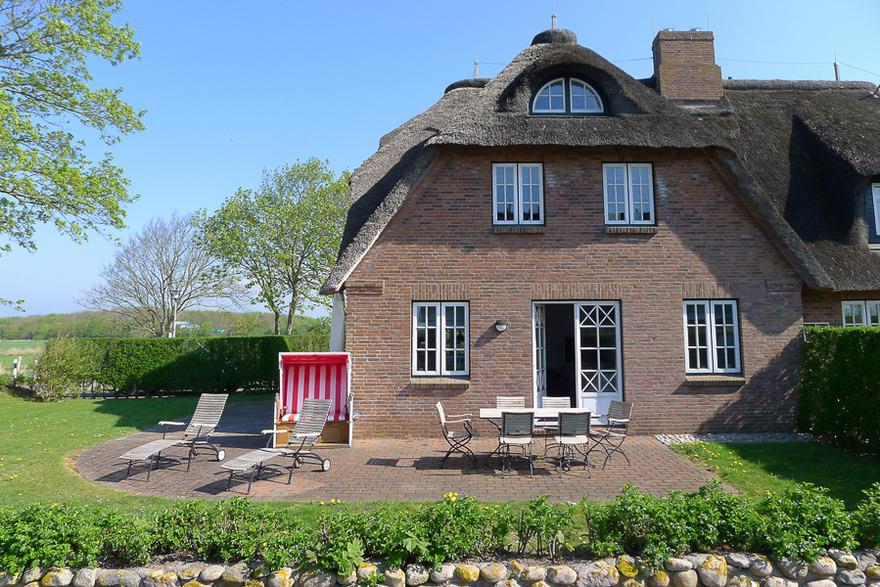 Einfach herrlich dieser Weitblick. Die Reetdachdoppelhaushälfte lässt keine Wünsche offen. Der großzügige Garten und die traumhafte Randlage mit Blick in die Marsch bieten Ihnen ein Umfeld, wie Sie es auch auf der Insel Föhr nicht oft wiederfinden. Hier werden Sie gelassen und entspannt Ihren Urlaub verbringen - weit weg vom Trubel der Großstadt. Im kleinen Örtchen Alkersum befindet sich das weitbekannte Museum Kunst der Westküste mit wechselnden Ausstellungen, das immer einen Besuch wert ist. Ein Bäcker und ein Hofladen runden den Ortsdurchgang ab. Wem das nicht reicht, der kommt im nahe gelegenen Friesenort Nieblum sicher auf seine Kosten oder startet gleich ins ca. 5 km entfernt gelegene Städtchen Wyk.