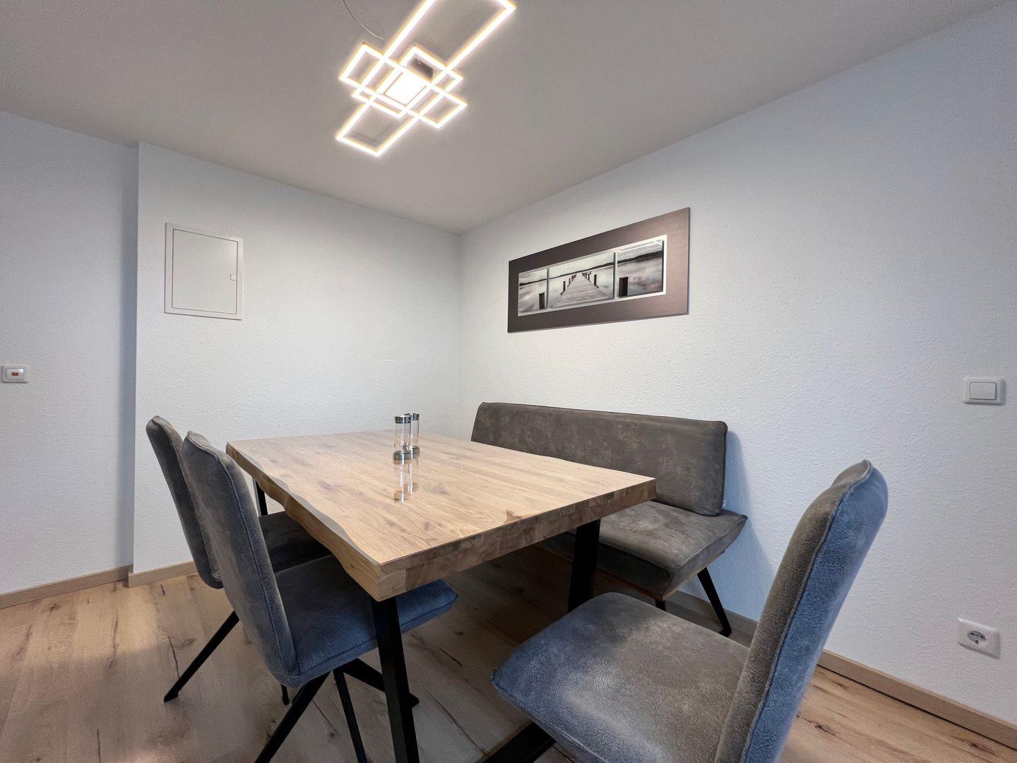Beim Betreten der Ferienwohnung werden Sie von einem freundlichen und lichtdurchfluteten Ambiente begrüßt. Die Verwendung von Holz in der Möblierung vermittelt eine natürliche und gemütliche Atmosphäre. Die geschmackvolle Einrichtung zieht sich durch alle Räume der Ferienwohnung und schafft ein harmonisches Gesamtbild. Von den bequemen Sitzmöglichkeiten im Wohnzimmer über den stilvollen Essbereich bis hin zu den liebevoll gestalteten Schlafzimmern - überall wird Ihnen ein modernes und gleichzeitig maritimes Flair geboten. Zudem ist die Wohnung kinderfreundlich gestaltet, um den Kleinen einen angenehmen Aufenthalt zu ermöglichen. Die Verbindung von moderner Ausstattung, maritimen Akzenten und der Verwendung von Holz in der Ferienwohnung SEEGlück schafft eine einladende und behagliche Atmosphäre. Hier können Sie sich nach einem ereignisreichen Tag am Bodensee zurücklehnen, entspannen und den besondere Charme dieser liebevoll gestalteten Unterkunft genießen.