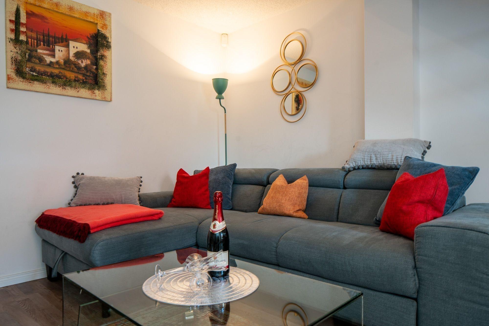 Das Wohnzimmer ist hell und modern eingerichtet, natürlich mit Sat-TV und Internet ausgestattet. Ein Highlight in diesem Bereich sind sicher die wunderschönen alten Dachbalken die nach der Instandsetzung nun einen besonderen Charme versprühen.