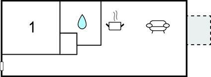 Opholdsstue/køkken - 1 Soveplads. (Sofa, madras eller lignende).