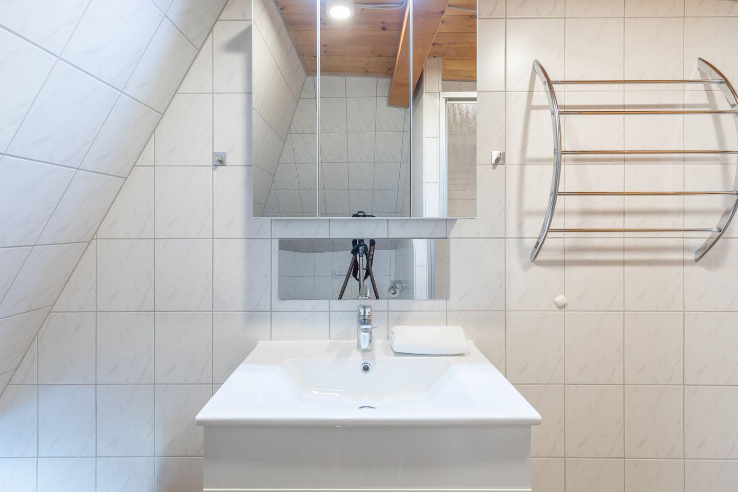 Über eine geschlossene Treppe erreichen Sie das Obergeschoss mit einem weiteren Schlafzimmer (160 x 200). Ein Highlight der Unterkunft ist der Wellness-Raum mit einer Sauna und dem Ruhebereich mit TV.