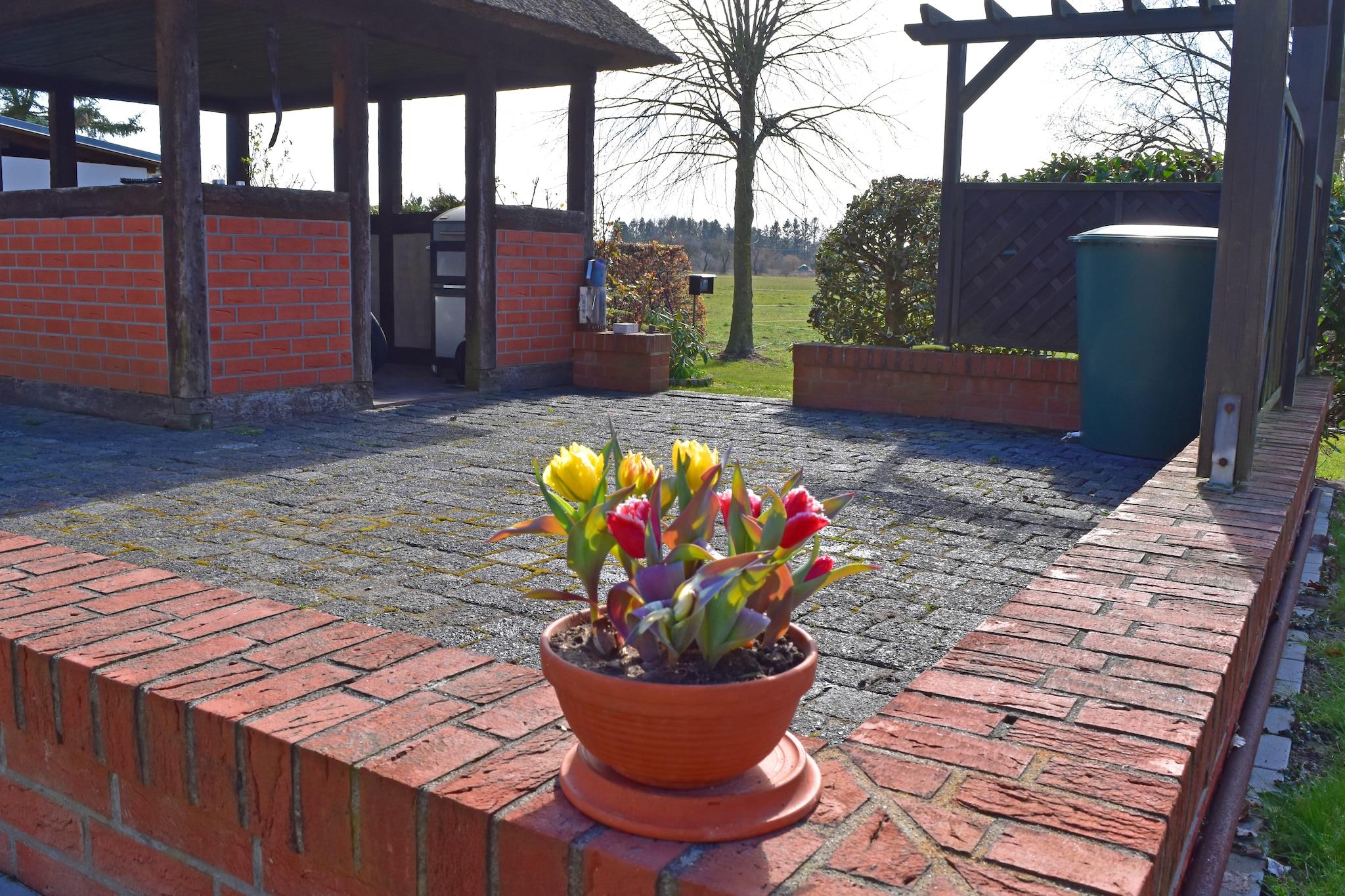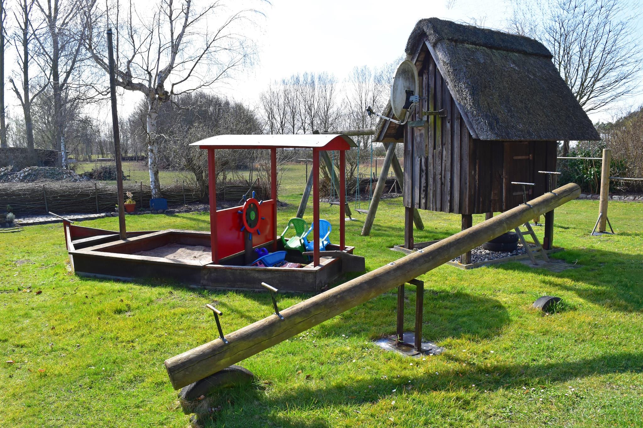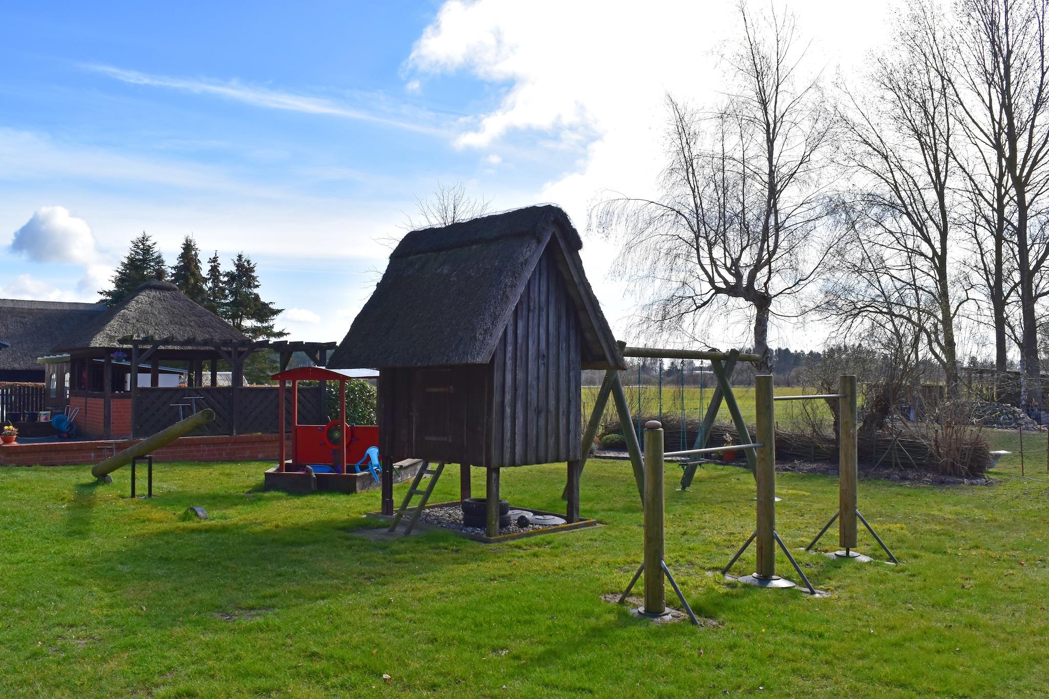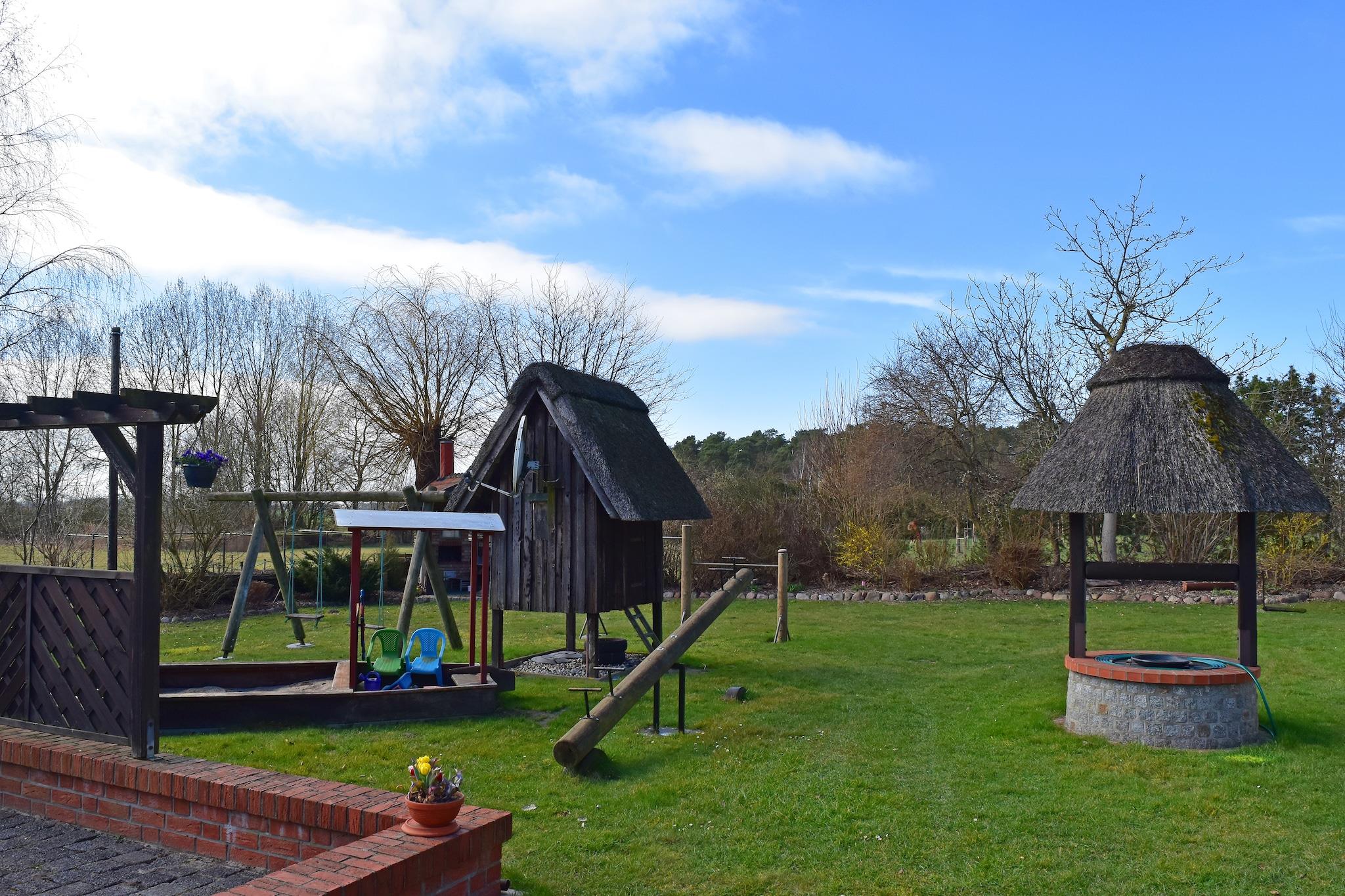 Ferie under stråtag! Tilbring din ferie i Mecklenburg-Vorpommern, tæt på Salzhaff og de indbydende strande ved Østersøen! Denne indbydende og rummelige ferielejlighed byder på masser af plads og komfort for op til 6 personer og et lille barn. Dit sommerhus ligger midt ude på landet i bydelen Bantow, som hører til Alt Bukow, på en stor og meget velholdt ejendom. Dit feriehus har 2 badeværelser, 2 soveværelser og et meget rummeligt køkken-alrum. Det udstyret køkken er veludstyret med alt hvad du behøver for at tilberede et godt måltid. Et rigtigt højdepunkt er haven, som er delvist tilgængelig for gæster til at bruge. Lige foran indgangen er der en overdækket siddeplads med mulighed for grill, en lille legeplads for børnene og husdyr er også velkomne. Efter en begivenhedsrig dag kan du forkæle dig selv med en lækker bøf fra grillen eller nyde freden og roen med en solnedgang. Dine meget imødekommende udlejere giver dig mulighed for at tilbringe en aften på røgeriet (mod betaling). Cykler du medbringer kan trygt opbevares i et skur. Højdepunkter inkluderer: Alle forbrugsafhængige energiomkostninger, Wi-Fi, 2 gratis parkeringspladser Overbelægning med et lille barn op til 2 år muligt. Der er mange gode udflugtsmål at udforske i det omkringliggende område. Rerik med sine fantastiske strande er kun en kort køretur væk og kan også nås på cykel, såvel som Salzhaff, Boiensdorfer Werder og Kühlungsborn. Besøg hansestaden Wismar med dens store havn og murstensgotiske arkitektur. Warnemünde og hansestaden Rostock er heller ikke langt væk og er ideelle dagsture. Herfra kan du starte en dagstur til Danmark med Scandlines rederiet. Kun en kort køretur væk i Neubukow finder du et bredt udvalg af butikker, dagligvarebutikker, tankstationer og meget mere.