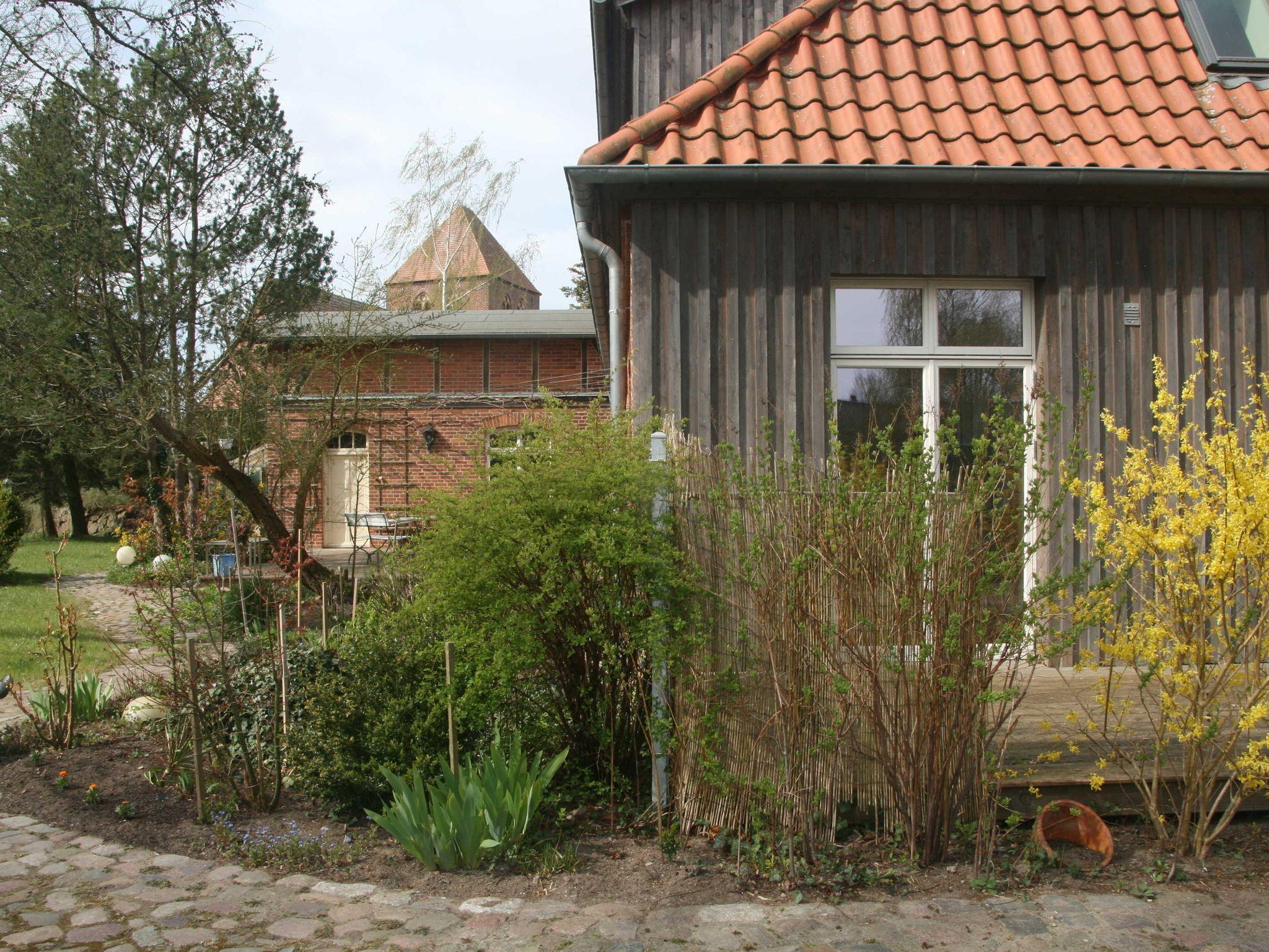 Vom gepflegten und naturbelassenen Gartengrundstück mit alten Bäumen gibts einen herrlichen Blick auf die Dorfkirche, Pferdekoppeln und Felder. Ein perfekter Ferientag klingt nach einer Radtour, einem Strandtag, einem Ausflug, Ausritt oder einer Wanderung entspannt und stressfrei aus.