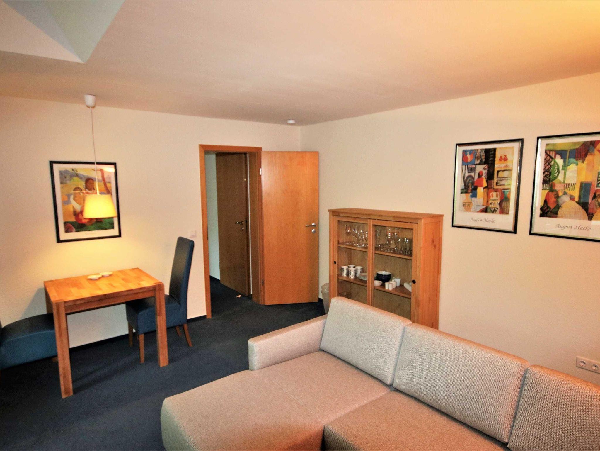 Ein über den Flur zu erreichendes, komplett ausgestattetes Einzelzimmer mit Seeblick kann gegen Aufpreis hinzu gebucht werden