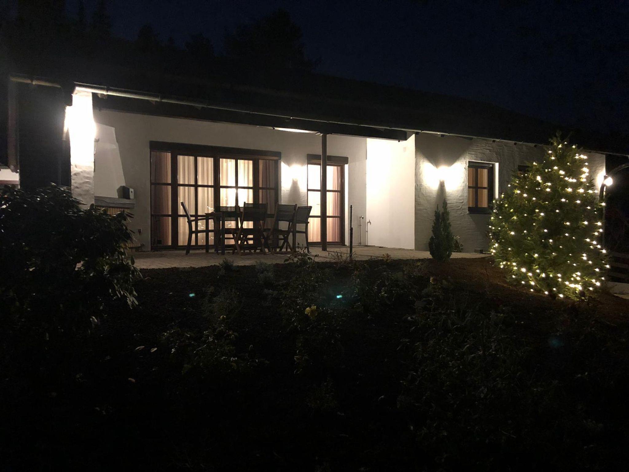 Das Ferienhaus erinnert bei der Einrichtung, z. B. Terrakotta Fliesen, echte Messingbeschläge an den Fenstern und Türen, Sprossenfenster, Wand-und Deckenleuchten und Vorhänge an die Toskana. Es ist mit Echtholzparkett ausgestattet und mit liebevollen Details dekoriert. Alle Räume sind komplett möbliert und hochwertig ausgestattet, ebenfalls die Terrassen. Das Ferienhaus verfügt darüber hinaus über einen offenen Kamin im Wohnzimmer, und auf der Terrasse, sowie einem Kachelofen in der Küche. Ebenso verfügt es über eine Zentralheizung und teilweise über eine Fußbodenheizung.