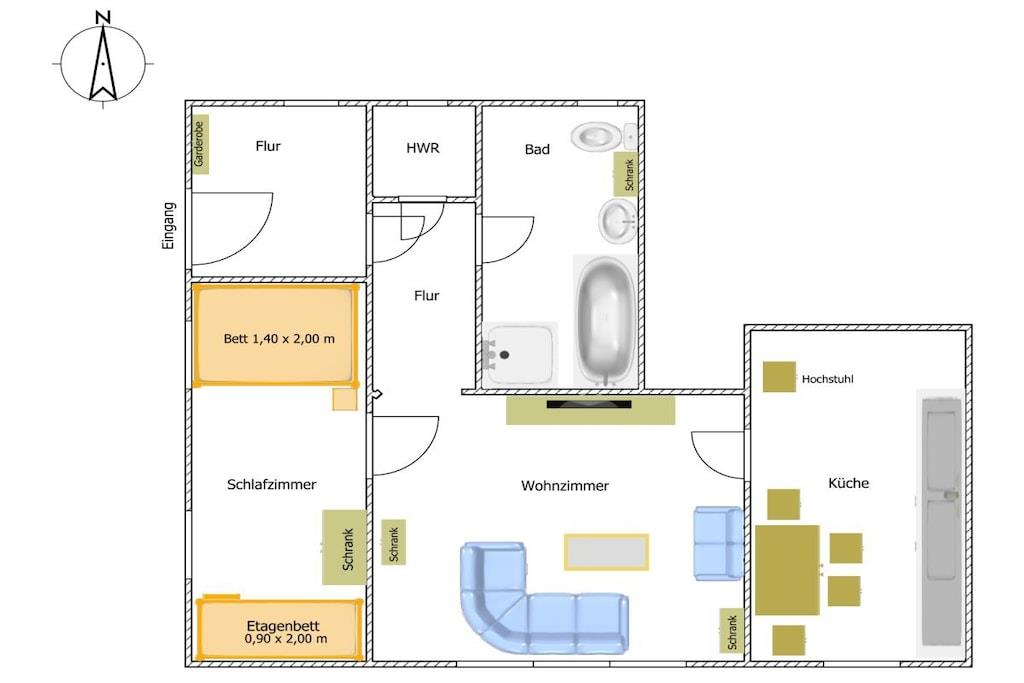 Ferielejligheden ligger i et roligt hus i centrum af badebyen Altefähr. Den ligger i stueetagen, har separat indgang, centralvarme, et fuldt udstyret køkken, et komplet badeværelse og en gratis parkeringsplads i gården. Gæster er også velkomne til at bruge den rummelige have til grill, solbadning og leg. Da ferielejlighederne "Gartenidyll" og "Achterkoje" ligger på samme grund, kun få meter væk, har du mulighed for at booke begge lejligheder samtidig, hvis det er nødvendigt. Ferielejligheden "Seebad" har plads til 4, lejligheden "Gartenidyll" har plads til 6, og lejligheden "Achterkoje" har plads til 8.