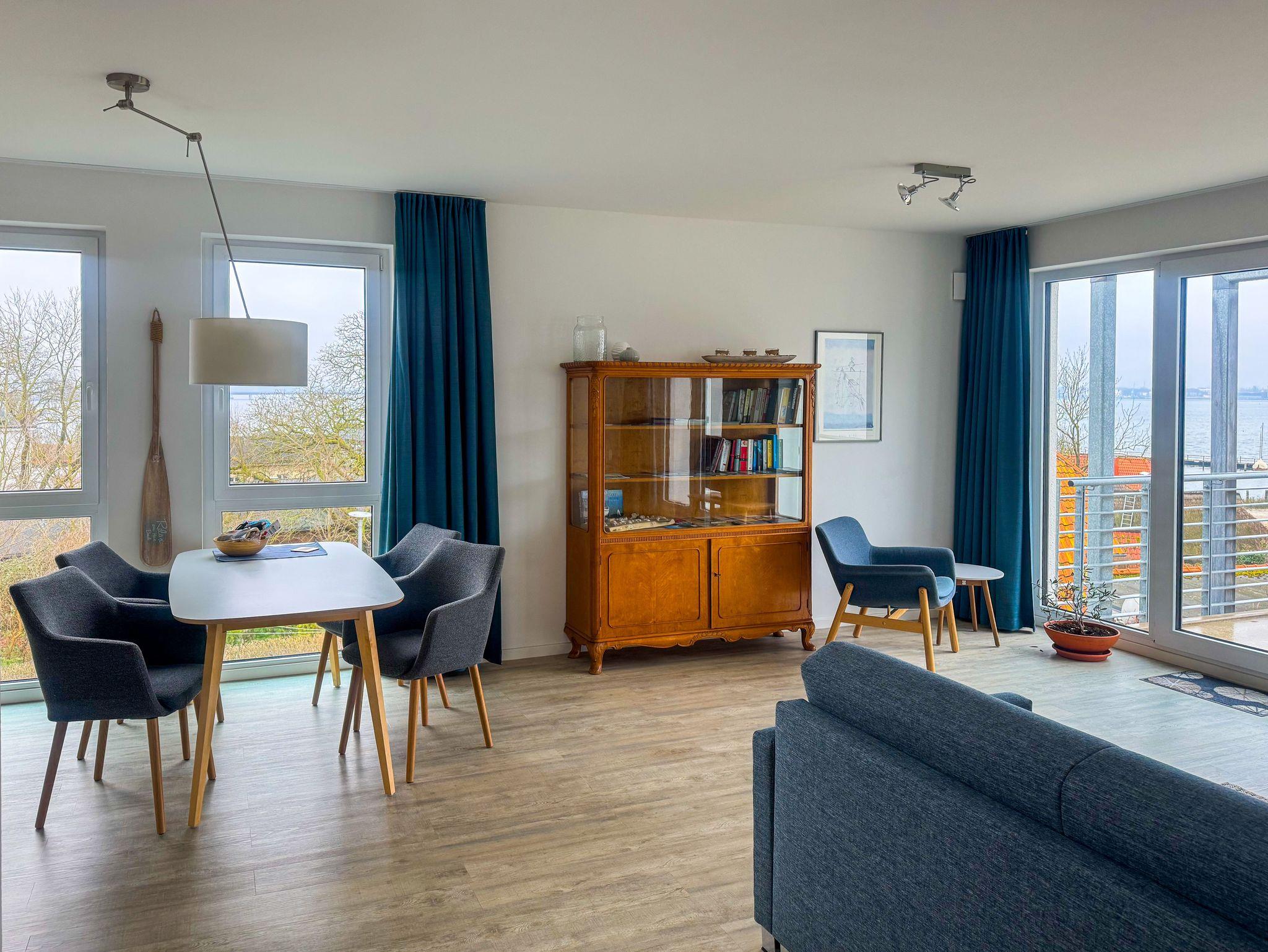 ...thronend über den Dächern von Altefähr, mit einem atemberaubenden Blick über den Strelasund auf die Skyline von Stralsund, wohnen Sie in einer 2018 fertiggestellten, modernen Nichtraucher-Ferienwohnung mit exklusiver Ausstattung. Es erwartet Sie in der 77 m² großen und liebevoll eingerichteten Wohnung (1.Etage) ein Wohnzimmer mit offener Wohnküche, ein Schlafzimmer und ein geräumiges Bad. Alle Räume sind mit Tageslichtfenstern und Fußbodenheizung ausgestattet. Der großzügige Balkon mit Blick auf den Strelasund, der Skyline von Stralsund und der neuen Rügenbrücke runden ihr Wohlfühlpaket ab.