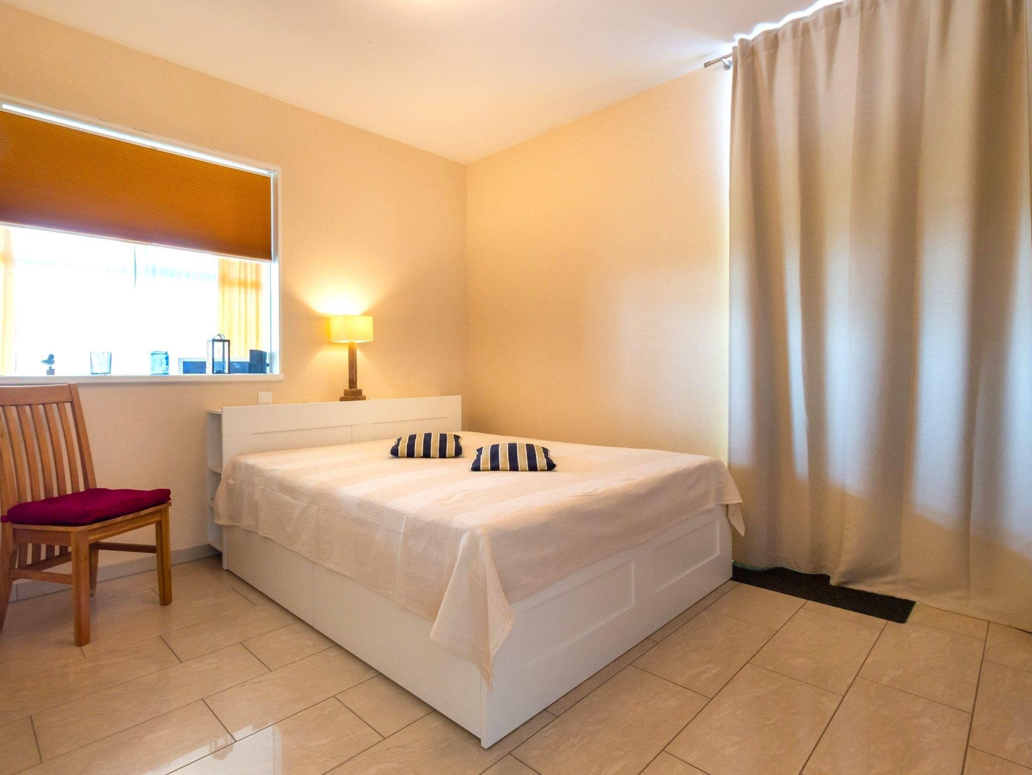Die beiden Schlafzimmer sind mit Doppelbetten á 1,80x2,00 m und 1,60x2,00 m (mit getrennten Matratzen) ausgestattet.