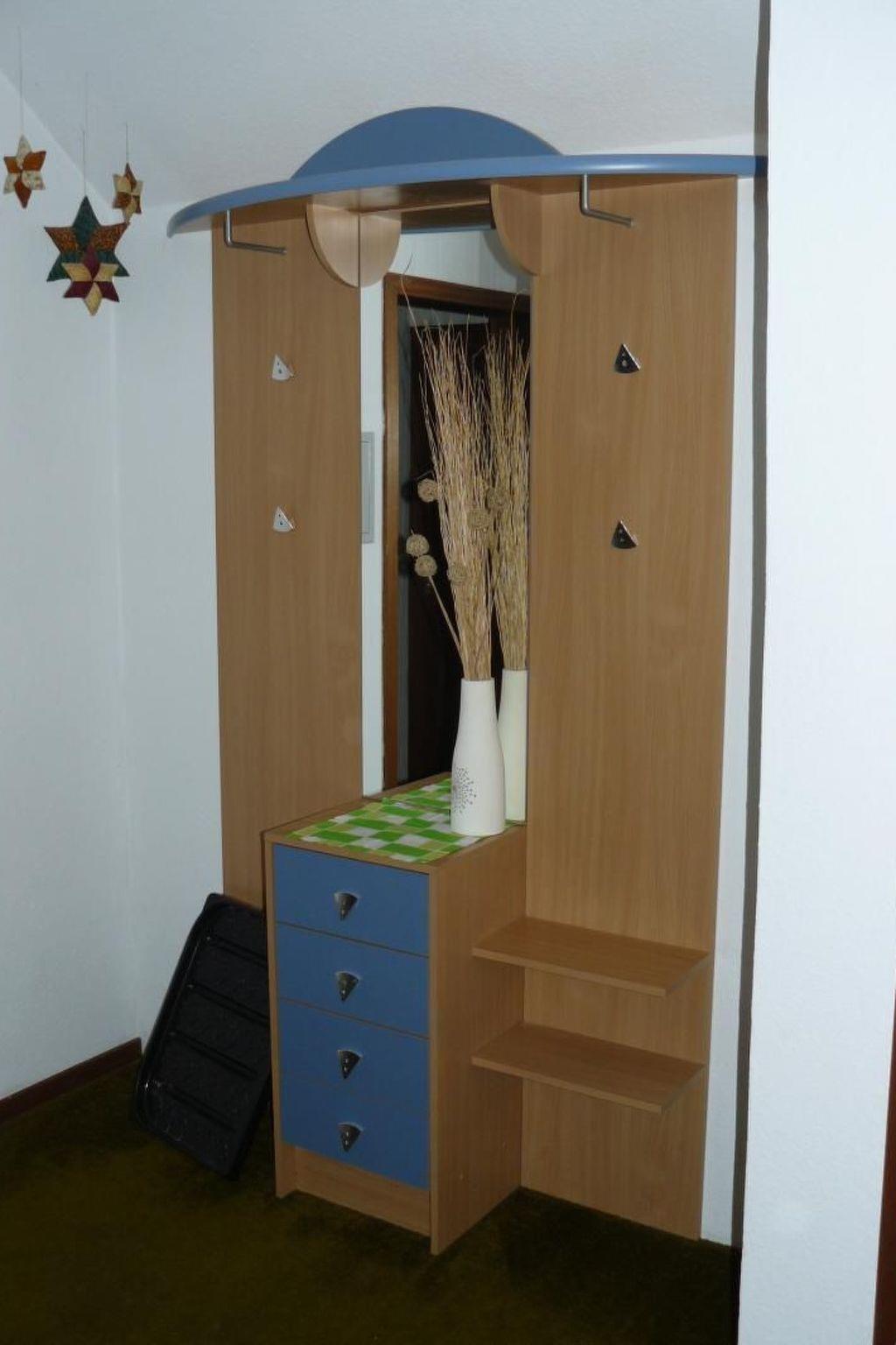 on the upper floor, cosily furnished living room with spacious dining area, satellite TV, CD radio. 2 bedrooms (5 beds). Fully equipped kitchen (electric cooker with oven, fridge with freezer compartment, coffee machine, toaster etc.). 1 shower room-WC. Heating. Balcony, barbecue area. Garden furniture. Car parking space, lockable ski/bike room. Living space approx. 52 sqm. W-Lan free of charge