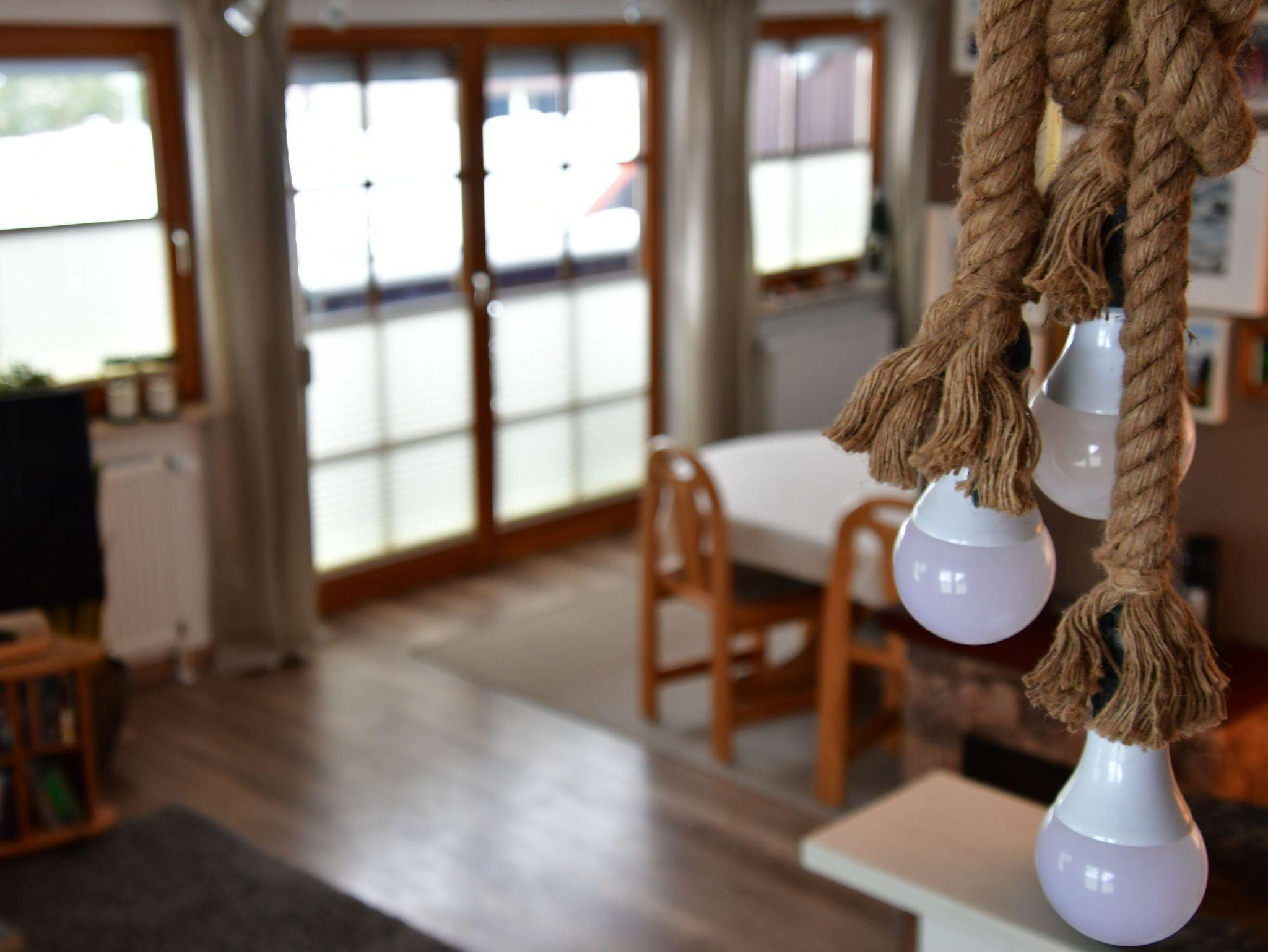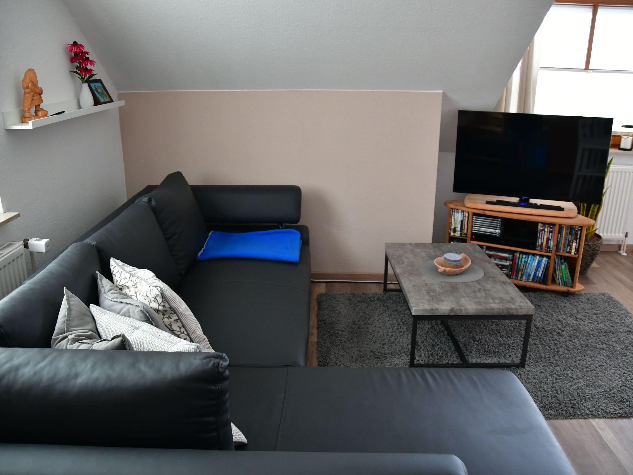 Die 70 m² große Ferienwohnung ist mit max. 4 Erwachsene und ein Kind bis 7 Jahre belegbar, mit Echtholzmöbeln sowie modernen skandinavischen Möbeln ausgestattet und ist südwestlich ausgerichtet. Das Schlafzimmer verfügt über ein Doppelbett (180x200), ein Kinderbett (140x70) und einen großen Kleiderschrank. Der Ess-, Wohn- und Küchenbereich sind offen gestaltet. Die Küche verfügt über einen Kühlschrank mit Gefrierfach, einen Geschirrspüler, einer Mikrowelle und einen E-Herd mit 4 Kochfeldern. Der Wohnbereich verfügt über ein Ecksofa, einen Flachbildschirm, DVD-Player (inkl. DVD-Thek) sowie über eine Spielecke für die jüngsten Gäste, mit einer kleinen Auswahl an Spielzeug und Büchern. Der Essbereich ist mit einem Esstisch für 4 Personen plus einen Kinderhochstuhl, einer Musikanlage, einer Spielsammlung und Büchern ausgestattet. Der Zugang zum Balkon erfolgt vom Essbereich aus, belegt mit Stühlen, einem Tisch, Sonnenschirm, lässt sich der Sonnenuntergang genießen. Im Badezimmer befinden sich eine Duschkabine, ein Handwaschbecken, ein Kinderhocker, ein Töpfchen und viel Ablagefläche. Das Studio im Spitzboden ist mit einem Doppelbett (180x200) und einem Flachbildschirm möbliert. Es handelt sich um eine rauch- und tierfreie Ferienwohnung.