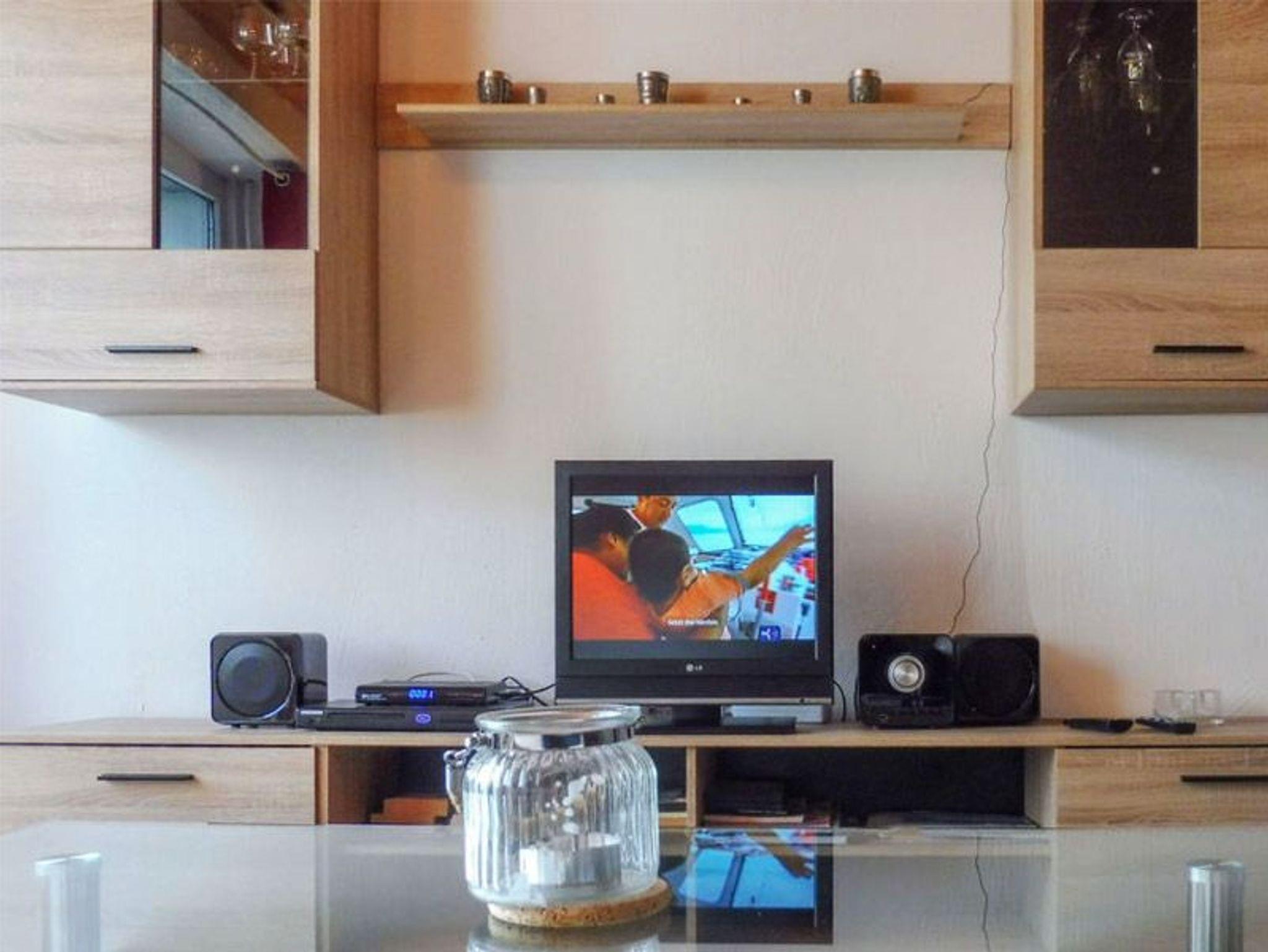 Das Wohnzimmer ist ausgestattet mit einem gemütlichen Sofa (Schlafgelegenheit für 3. Person), einem Flachbildschirm und einer HIFI-Anlage, sowie einem Essbereich. Die offene Küche verfügt neben Herd, Backofen und Mikrowelle über Kühlschrank, Kaffeemaschine, Toaster und Wasserkocher. Eine Gefriermöglichkeit ist ebenfalls vorhanden. Im Schlafzimmer findet man ein Doppelbett.