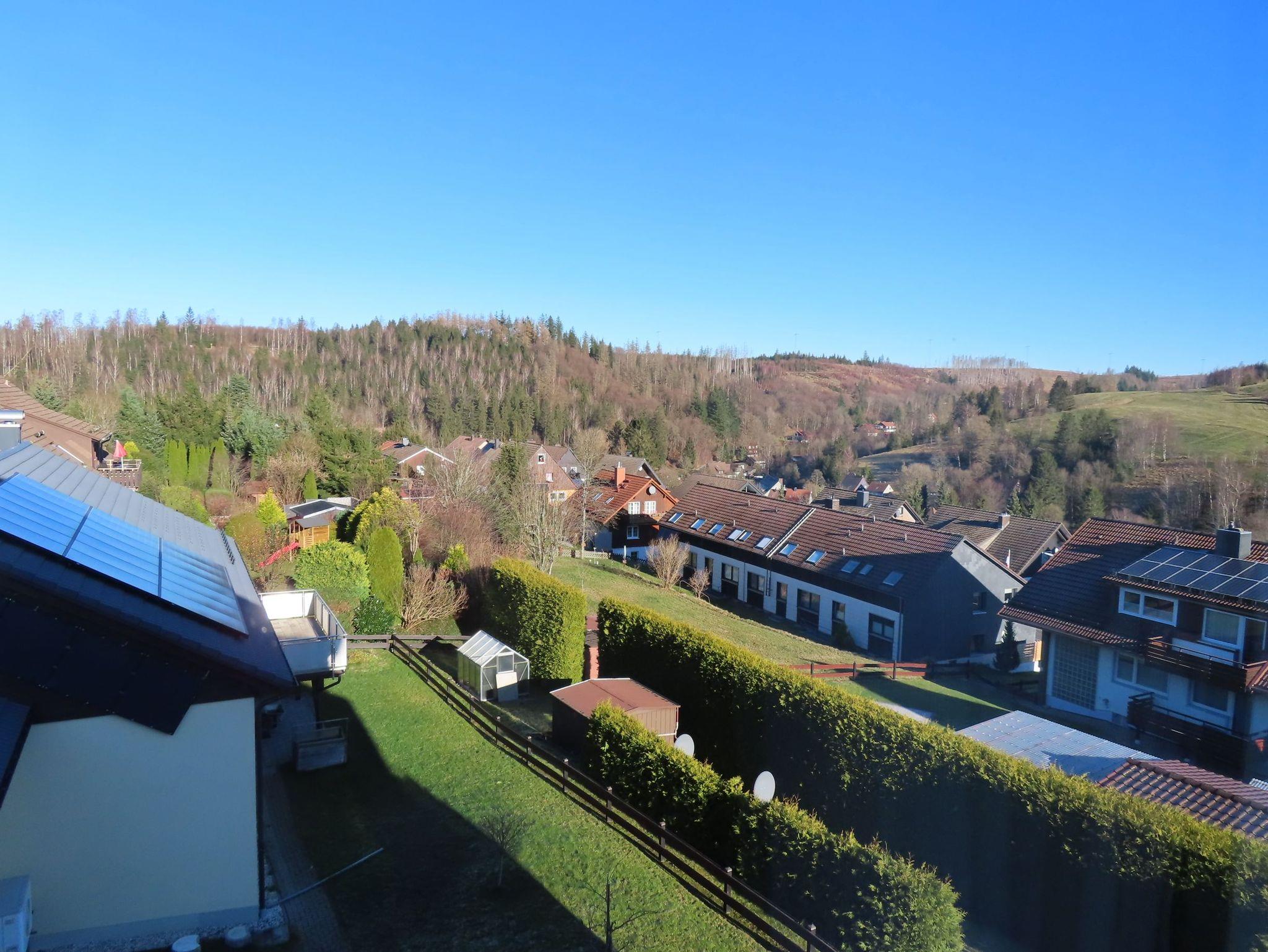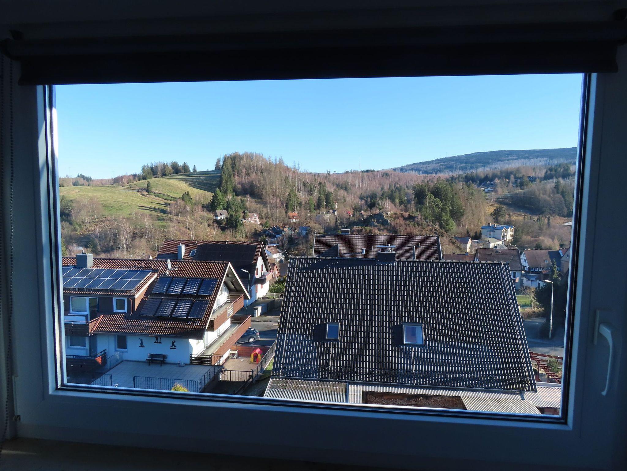 Vom Wohnzimmer aus hat man einen wunderschönen Blick in den Ort und auf die angrenzenden Berge. Von hier aus kann man unmittelbar zu tollen Wandertouren starten. Die Kristall-Therme Heißer Brocken ist in wenigen Gehminuten zu erreichen.