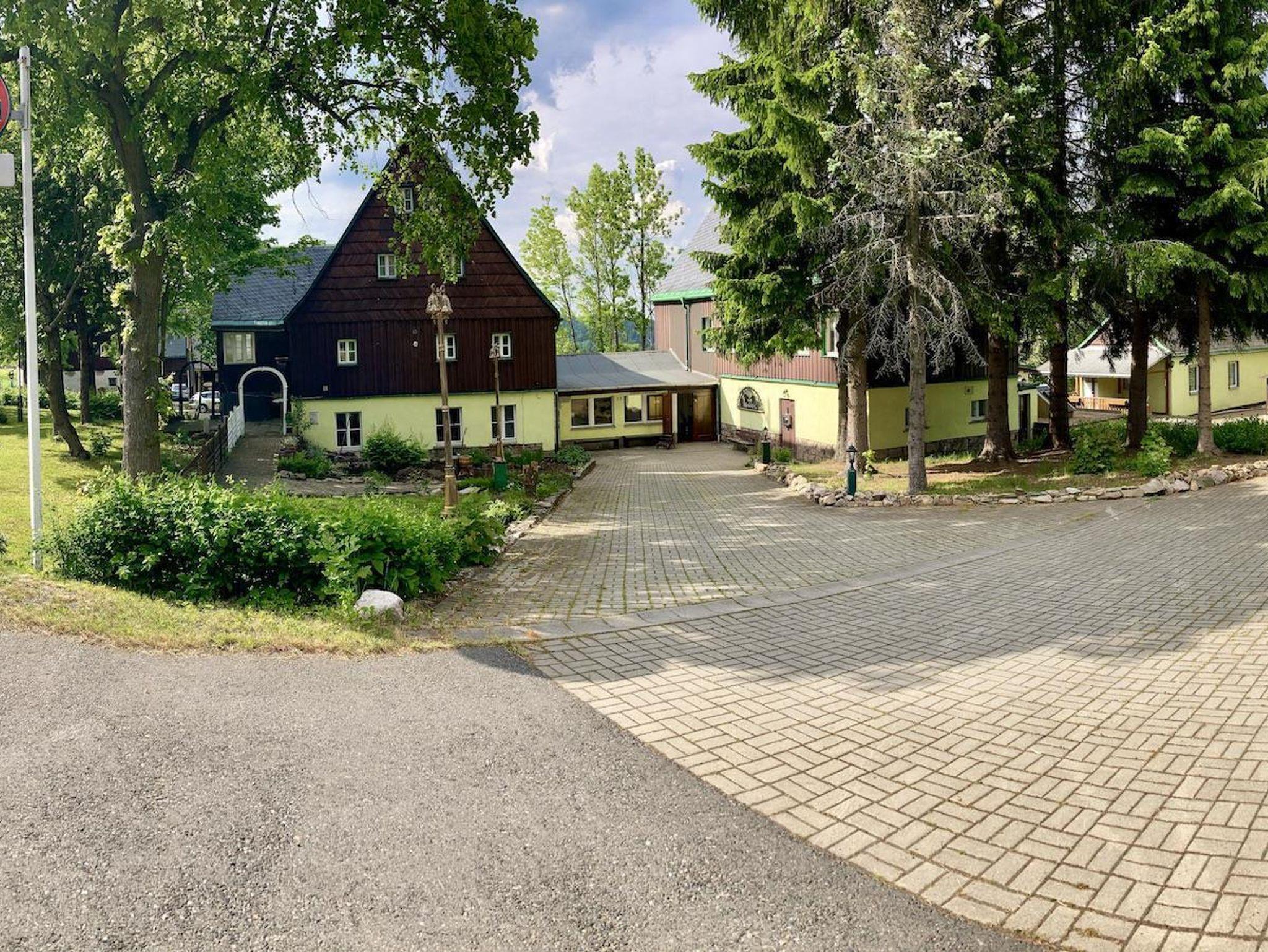 Um 1900 erbaut, erlangte das Objekt Bekanntheit unter dem Namen Hutzenhäusel. Der erzgebirgisch-vogtländische Begriff „Hutzen“ bedeutet dabei soviel wie „zu den Nachbarn auf Besuch gehen“ oder „zusammenrücken“ oder „zusammensitzen“. Die Fassade des Haupthauses ist heute denkmalgeschützt. Unsere Pension und Ferienwohnanlage verfügt über ein Haupthaus mit vier Ferienwohnungen und einem Märchenzimmer (Zweibettzimmer). Ein separater Bungalow ist mit drei Doppelzimmer und Balkon oder Terrasse ausgestattet. Eine große Steinterrasse mit Blick über die weiträumigen Wiesen auf den Wald. Outdoor-Spiele wie Badminton, Fußball etc. sind möglich. Für die Grillfreunde stehen drei Varianten zur Verfügung. Die Größte ist gleichzeitig auch eine Feuerstätte, die mit einem stabilen Schwenkgrill versehen ist - lauschige Abende am offenen Feuer garantiert. Ein großzügig gestalteter Saunabereich rundet das Angebot ab.