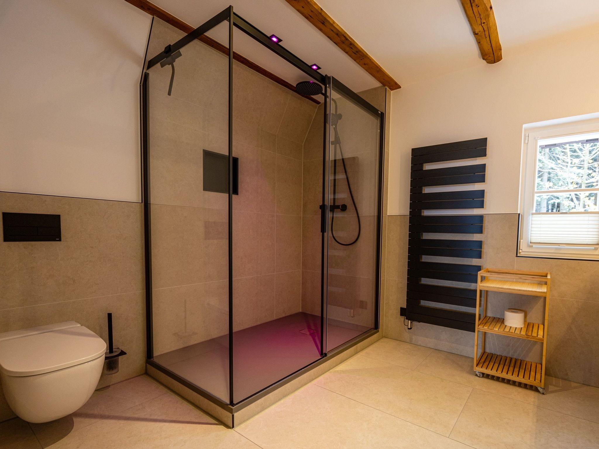 Eine farblich beleuchtete Wellnessdusche im großen Bad ist der perfekte Beginn eines Abenteuers. Sie macht dich frisch für alles, was kommt oder entspannt dich nach einem erlebnisreichen Tag.