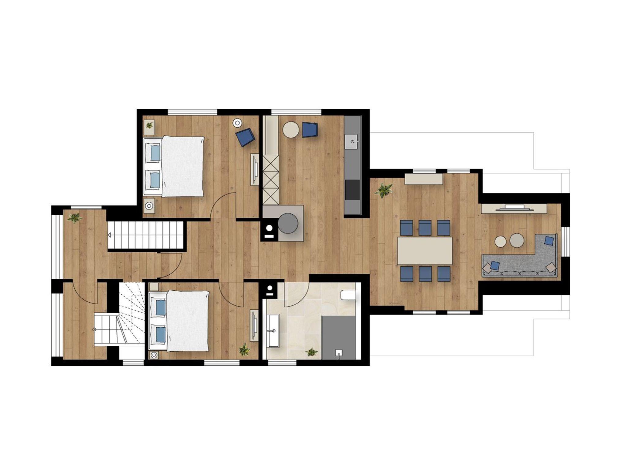 Die beiden Schlafzimmer mit Doppelbetten wiegen dich in tiefe Träume, damit du am nächsten Tag die Umgebung erkunden kannst.