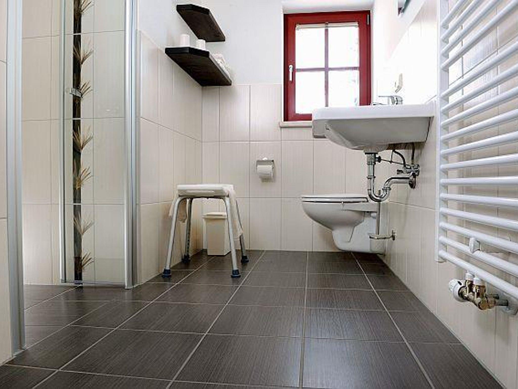 Barrierefreies Doppelzimmer mit Aufbettung und separatem Eingang im Obergeschoss mit 28 m² Wohnfläche und Dusche / WC und Balkon.