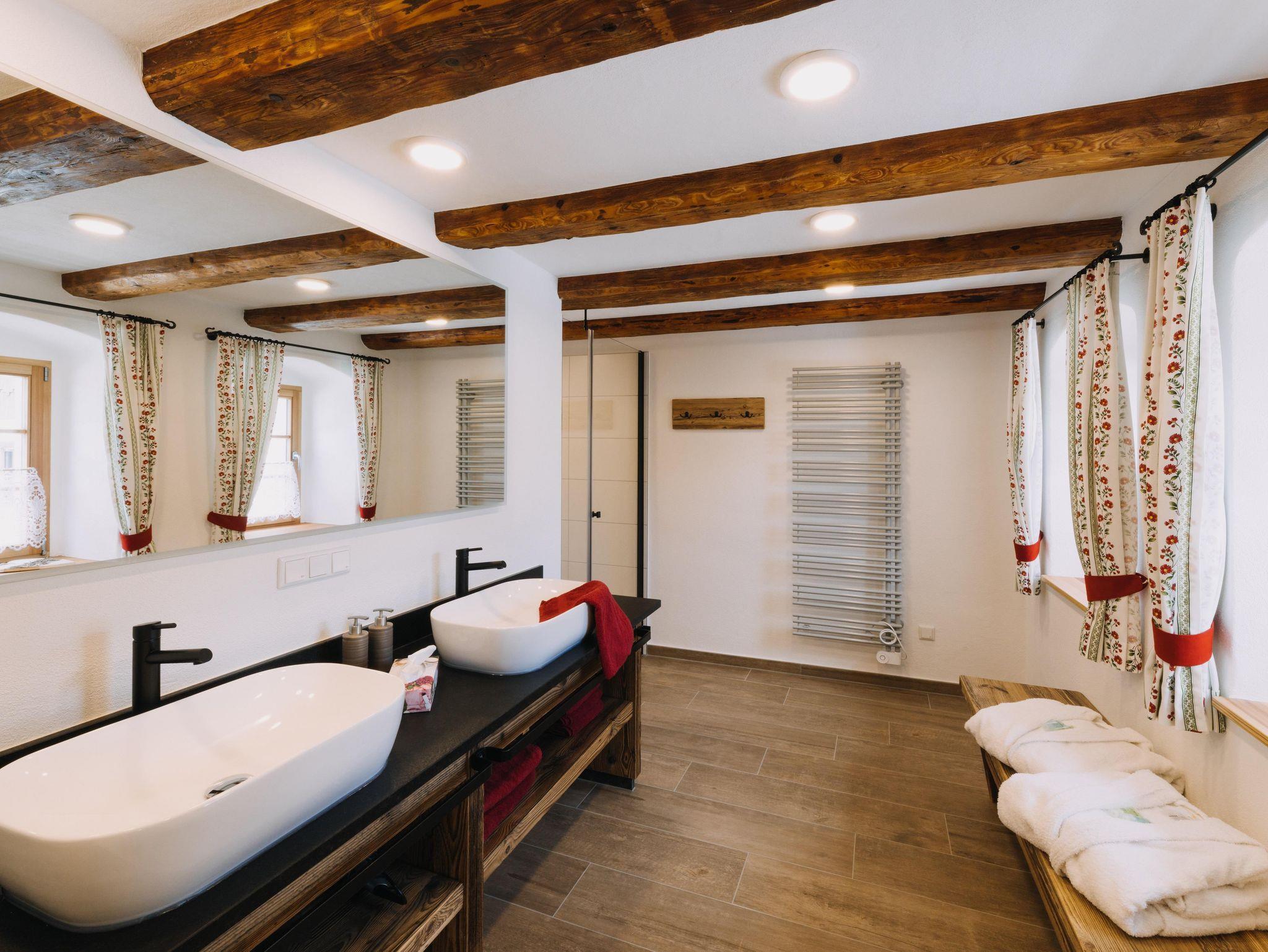 Das Haus verfügt über zwei großzügige Zirbenschlafzimmer mit TV, Verdunklungsvorhängen und Fliegengittern. Ein Schlafraum hat zusätzlich einen großen Balkon. Das zweite Schlafzimmer kann als Familienzimmer genutzt werden. In der gemütlichen Zirbenstube mit Ofen und langer Ofenbank lässt es sich herrlich entspannen, eine kleine Spielesammlung lässt keine Langeweile aufkommen. Die vollausgestattete Küche bietet alles, was das Genießerherz begehrt und lädt dazu ein, gemeinsam zu kochen. Das große Badezimmer mit begehbarer Dusche und Duschhocker im Erdgeschoss bietet viel Platz und Komfort, während die Infrarotkabine für wohltuende Entspannung sorgt. Die Fußbodenheizung im gesamten Haus bringt das ganze Jahr über angenehme Wärme und schafft eine behagliche Atmosphäre. Die große Wiese hinter dem Haus mit kleinem Bachlauf und Sitzstein lädt zum Verweilen oder Spielen ein. Ein großer Grill ermöglicht unseren Gästen ein leckeres Abendessen unter der überdachten Terrasse.
