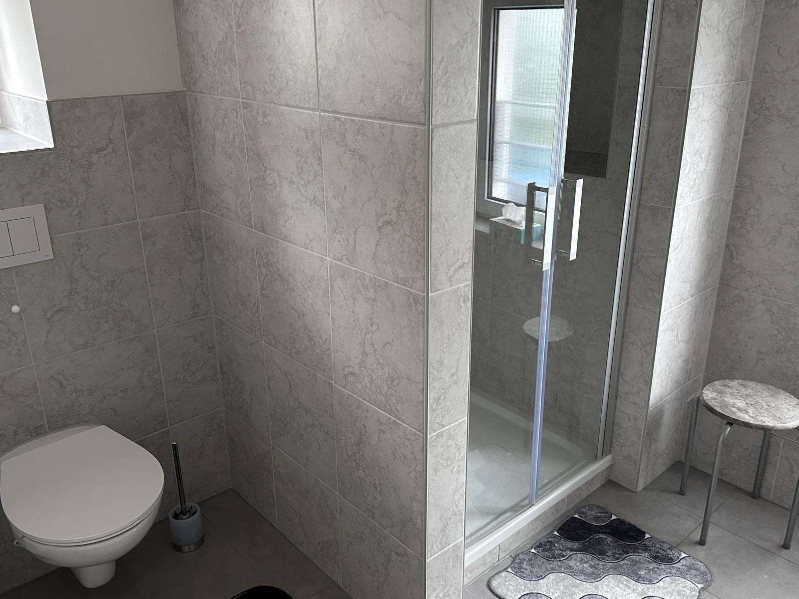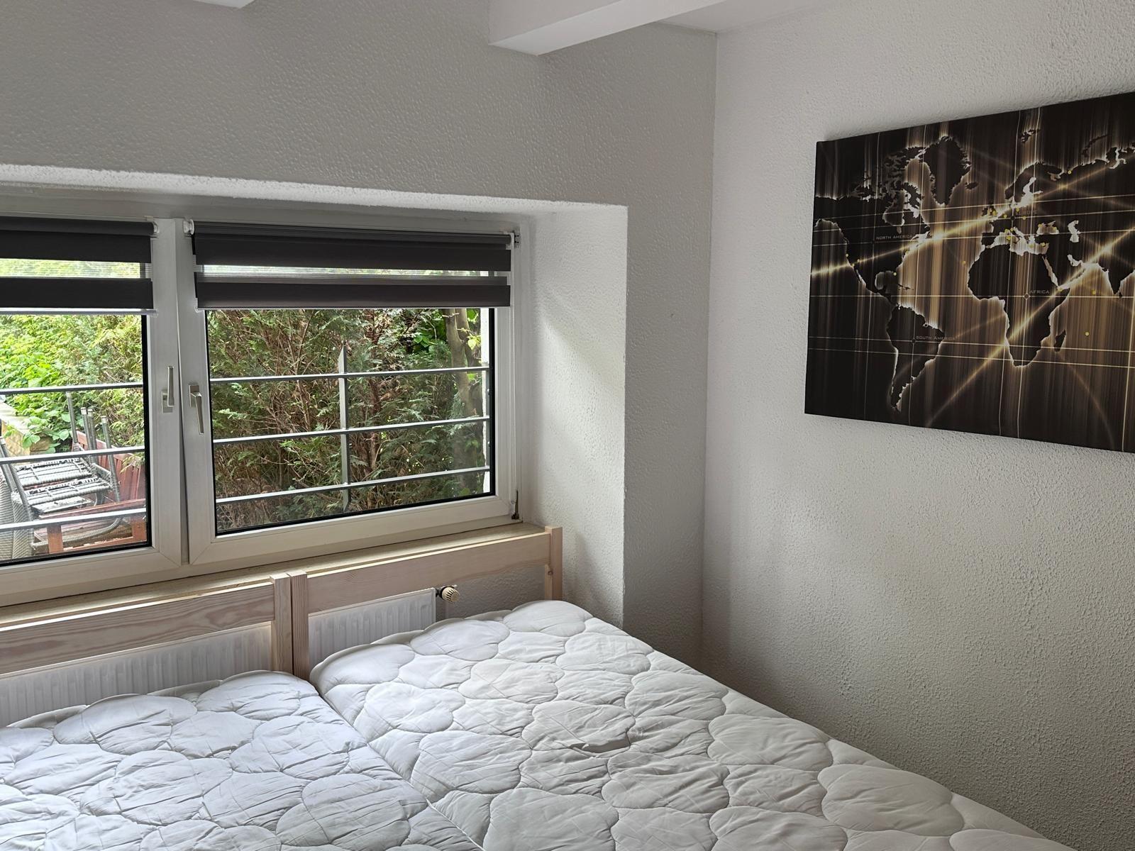 Our guests also have a chic and modern bathroom and a cosy bedroom with wardrobe at their disposal.